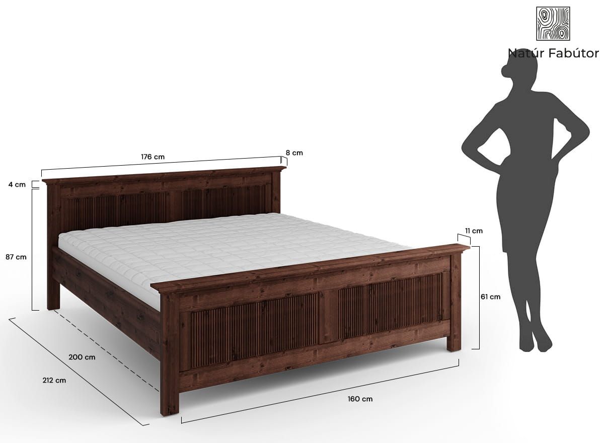 Ágykeret, fenyő, tabacco szín, 160x200 cm - Rosella