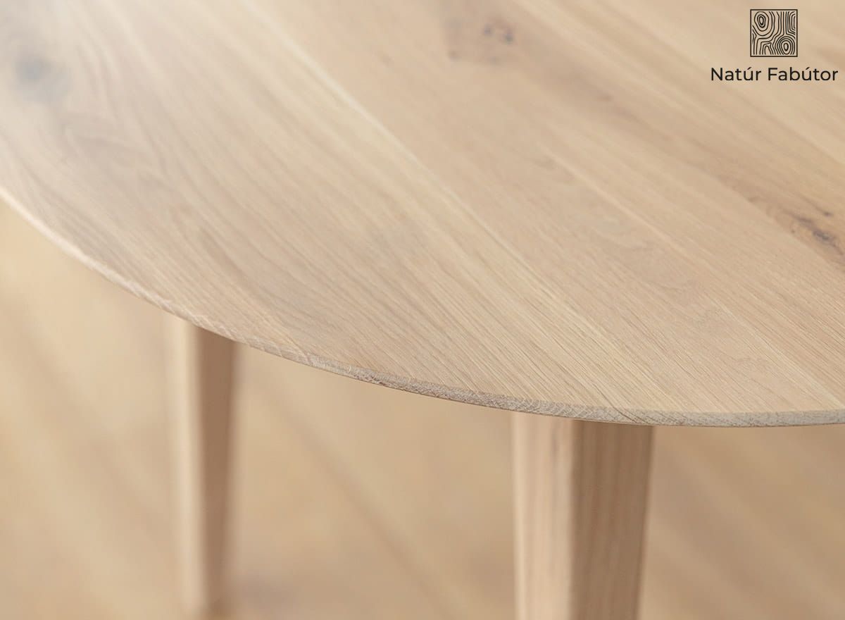 Ez az asztal tömör tölgyfából készült – az egyik legtartósabb és legnemesebb alapanyagból. A fehérített felület finom, skandináv jellegű megjelenést ad, míg az olajozás kiemeli a fa erezetét és védi a mindennapi használattal szemben. A bútor kiválóan ötvözi az esztétikát a praktikummal. A felhasznált fa kizárólag tanúsított forrásból származik, így választásával nemcsak a minőségbe, hanem a felelős gyártásba is befektet.. A tölgy időtálló anyag, amely az évek során egyre nemesebb karaktert nyer.
