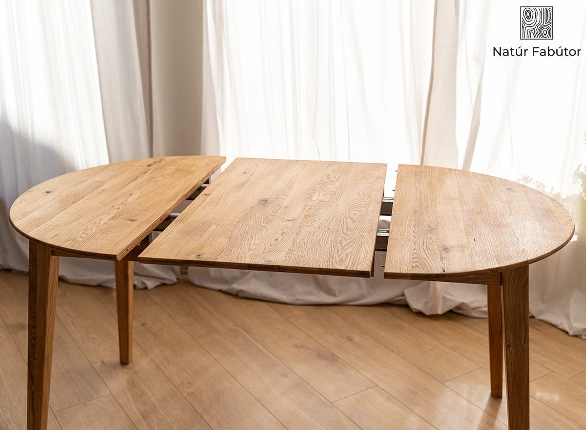 Kerek tölgyfaasztal 110, két hosszabbító elemmel 50 cm