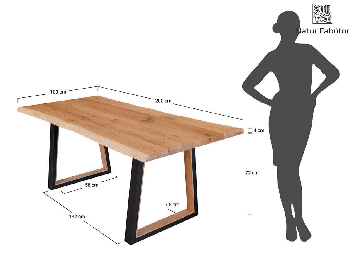 Ha olyan bútordarabot keres, amely hosszú évekre szól, a bemutatott tölgyfa asztal 200x100 cm-es méretben tökéletes választás az Ön számára. Időtlen megjelenése soha nem megy ki a divatból, a gondos, részletekre odafigyelő kivitelezés pedig lehetővé teszi, hogy a mindennapi használat mellett hosszú évekig élvezze vonzó kialakítását. A loft stílusú asztal tölgyfa lap és fém lábak kombinációjából készült, amelyek tökéletesen illeszkednek egymáshoz, ígyaz tömörségének köszönhetően nagyon stabil, és nem kezd el billegni, ami szintén garantálja a használat biztonságát.