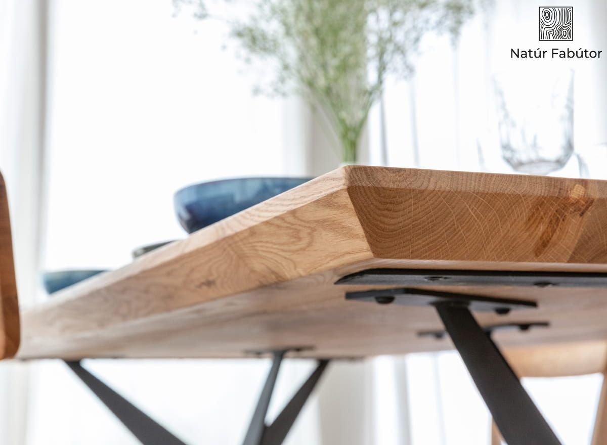 Asztal tölgyfa asztallappal és fém lábakkal - a tér loft stílusú kiegészítője