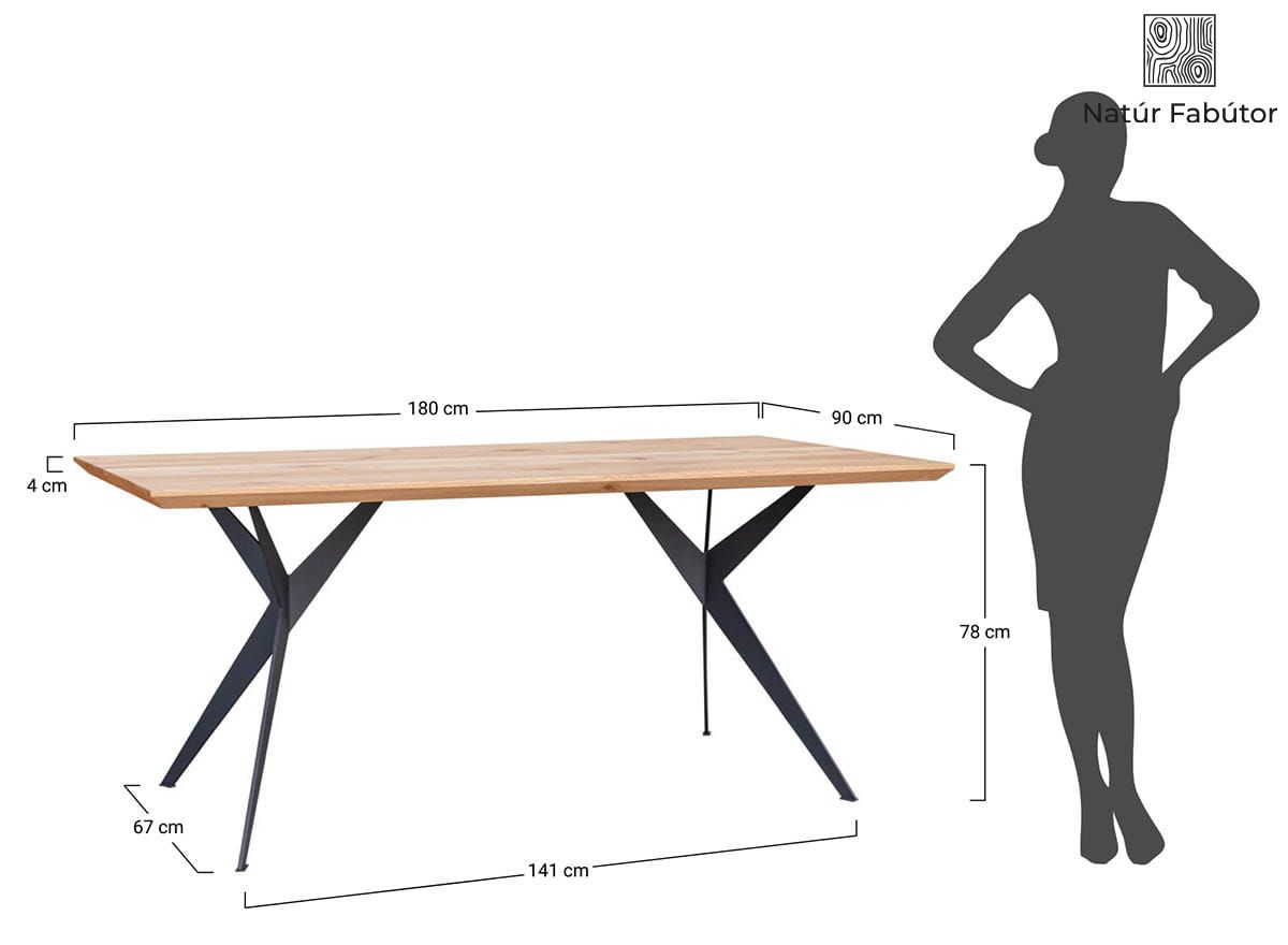 Asztal, 4 cm asztallap, tölgyfa, fém lábakkal 180x90 - Caserta