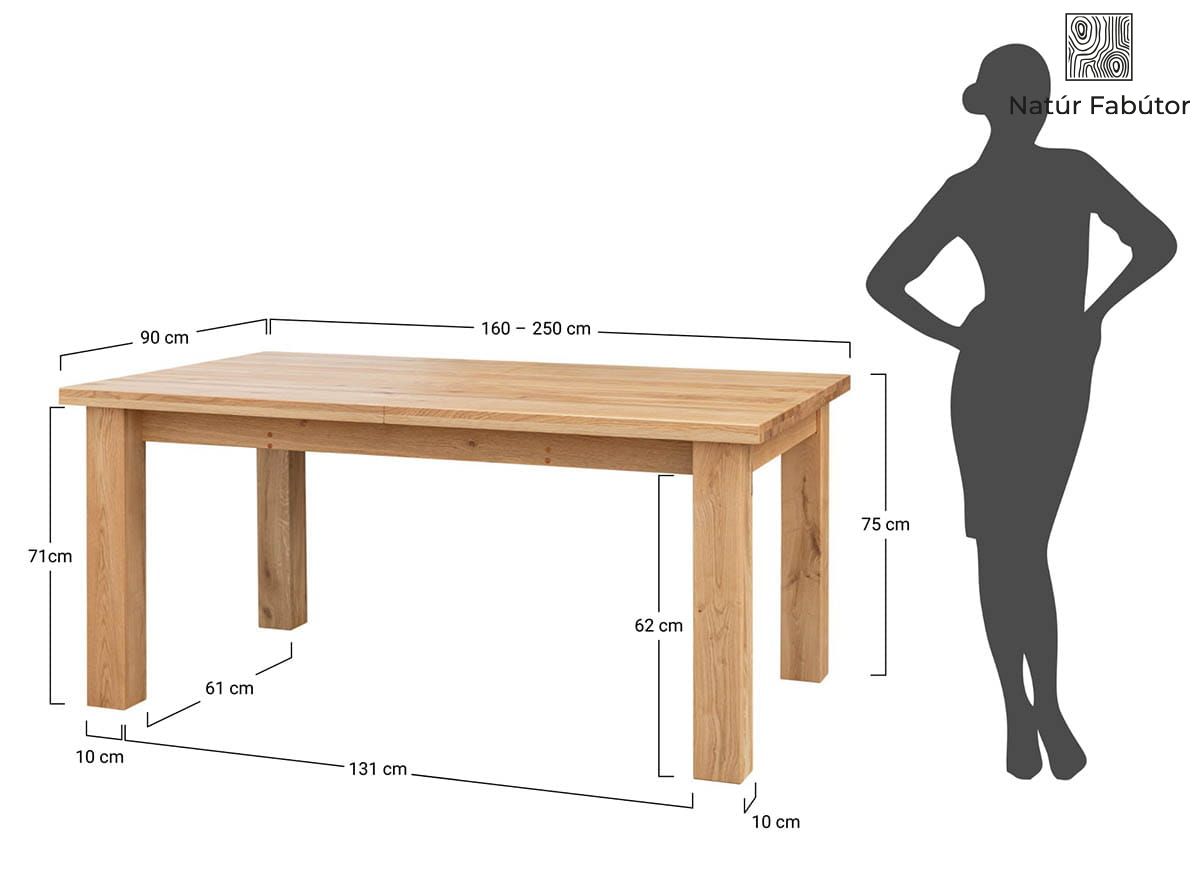 Asztal tölgyfa, kihúzható 160x90 - Grossi
