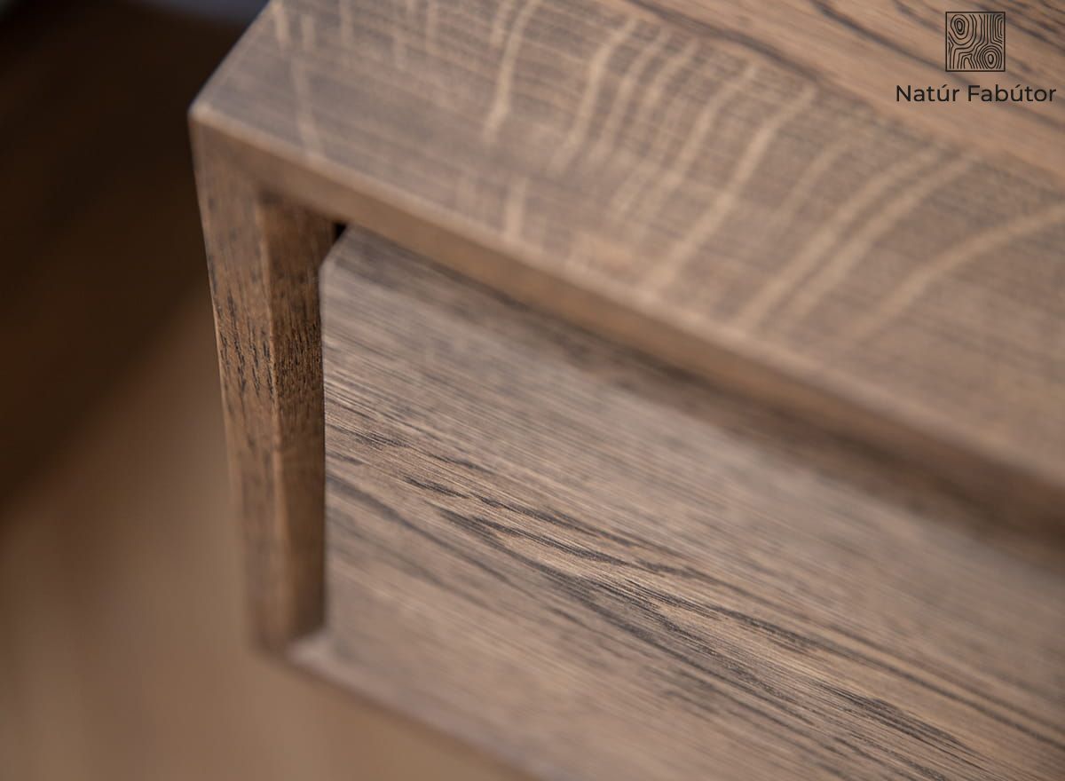 Az ezen az oldalon bemutatott fából készült éjjeliszekrény egy olyan bútordarab, amely rendkívül vonzó, ugyanakkor minden használati körülménynek ellenáll, ami azt is jelenti, hogy hosszú évekre tervezték. A termék teljes egészében füstölt tölgyből készült - egy számos előnnyel rendelkező természetes alapanyagból, amely lassan, de fokozatosan kiszorít számos más, a bútorgyártásban leggyakrabban előforduló fafajtát. A szekrény a sima záródást biztosító fiók sínekkel van felszerelve, amelyek használat közben nem keltenek kellemetlen zajokat, még hosszú évek múltán sem.