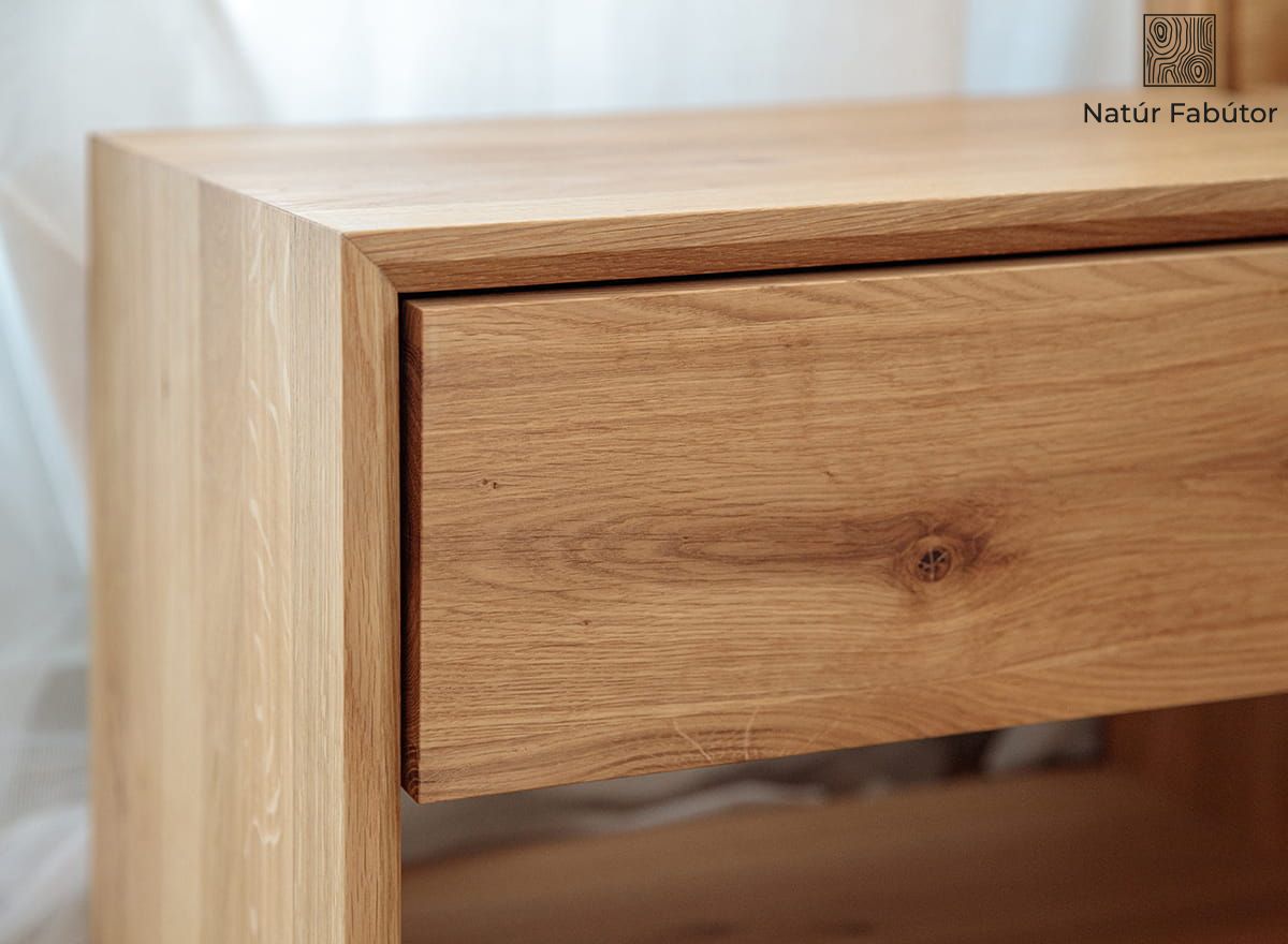 Az itt ajánlott fából készült éjjeliszekrény egy olyan bútordarab, amely különösen népszerű, nem utolsósorban átlagon felüli minősége miatt. A bútordarab teljes egészében olajozáson átesett tölgyfából készült, ami garantálja hosszú távú tartósságát és ellenállását gyakorlatilag minden sérüléssel szemben. Könnyen ellenáll az ütéseknek és karcolásoknak, és ha mégis bekövetkezne a sérülés, az újrafényezéssel könnyen eltávolítható.