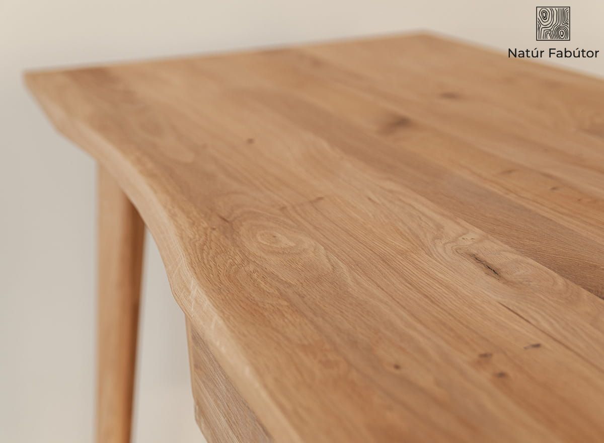Tudta, hogy az olajozott vad tölgy az egyik legtartósabb anyag? Így nincs szükség masszív szerkezetre ahhoz, hogy olyan szilárd és stabil bútordarabot hozzon létre, mint ez a skandináv stílusú íróasztal. A látható szemcseméret gyönyörködtet a csomókkal és gyűrűkkel, amelyeket még jobban kiemel az olajozás, amelyen a bútor átesett.