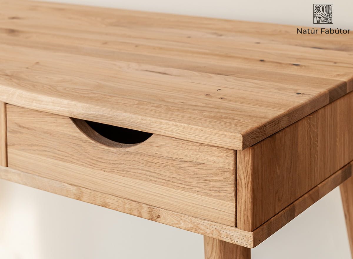 Elege van az üzletláncokban bőven fellelhető kopottas, tölgyfa utánzatú bútorokból? Válasszon valódi minőségi fát! Kínálatunkban megtalálja az olajozott vad tölgyfa Simona íróasztalt, amely karaktert kölcsönöz szobájának. A skandináv stílusú tölgyfa íróasztalt minimalista dizájn jellemzi, így sok, akár kis helyiségbe is belefér. Éppen ezért különösen jól fog működni a skandináv stílusban berendezett helyiségekben.