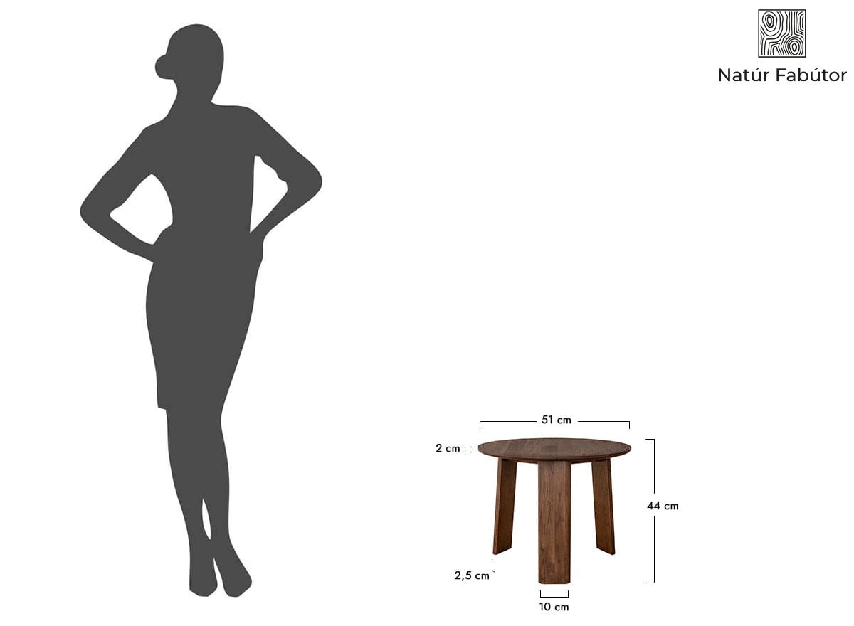 A Monti kollekció 51 cm-es átmérőjű dohánybarna kerek asztala a valódi elegancia megtestesítője, amely azonnal magára vonja a figyelmet. Ez a bútordarab a klasszikus stílus és a modern elemek tökéletes ötvözete. Mély, sötét dohánybarna színe remekül illeszkedik mind a modern, mind pedig a klasszikus belső terekbe. Ez egy olyan bútor, amely meglepi az embert a varázsával – kerek asztallapja, amely három masszív lábon nyugszik, tökéletesen megállja a helyét a pihenőzóna középpontjában, de más helyeken is jól használható.