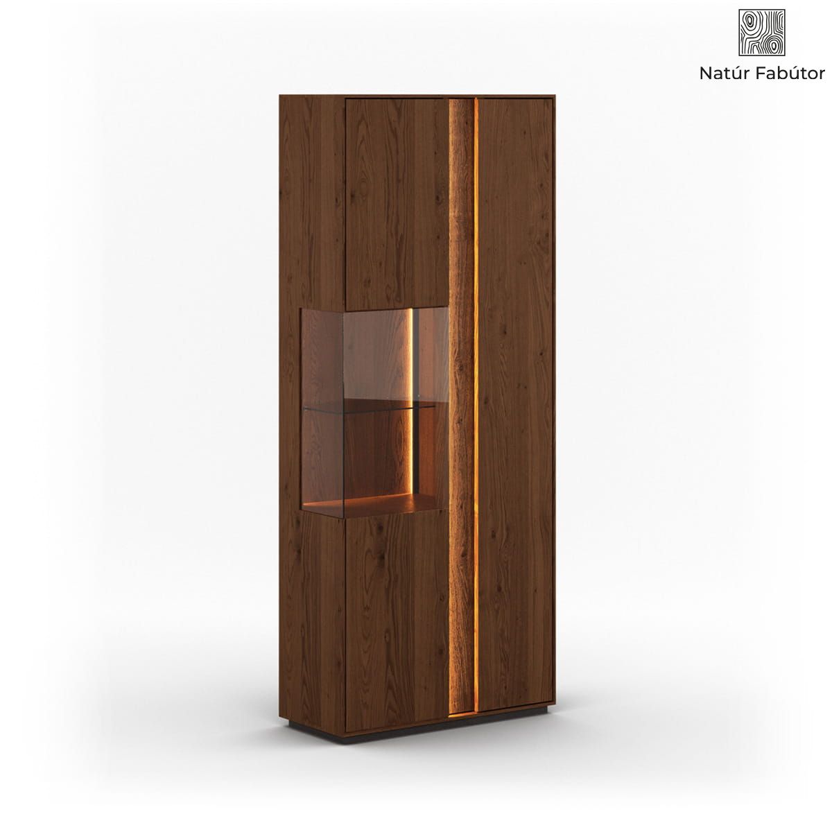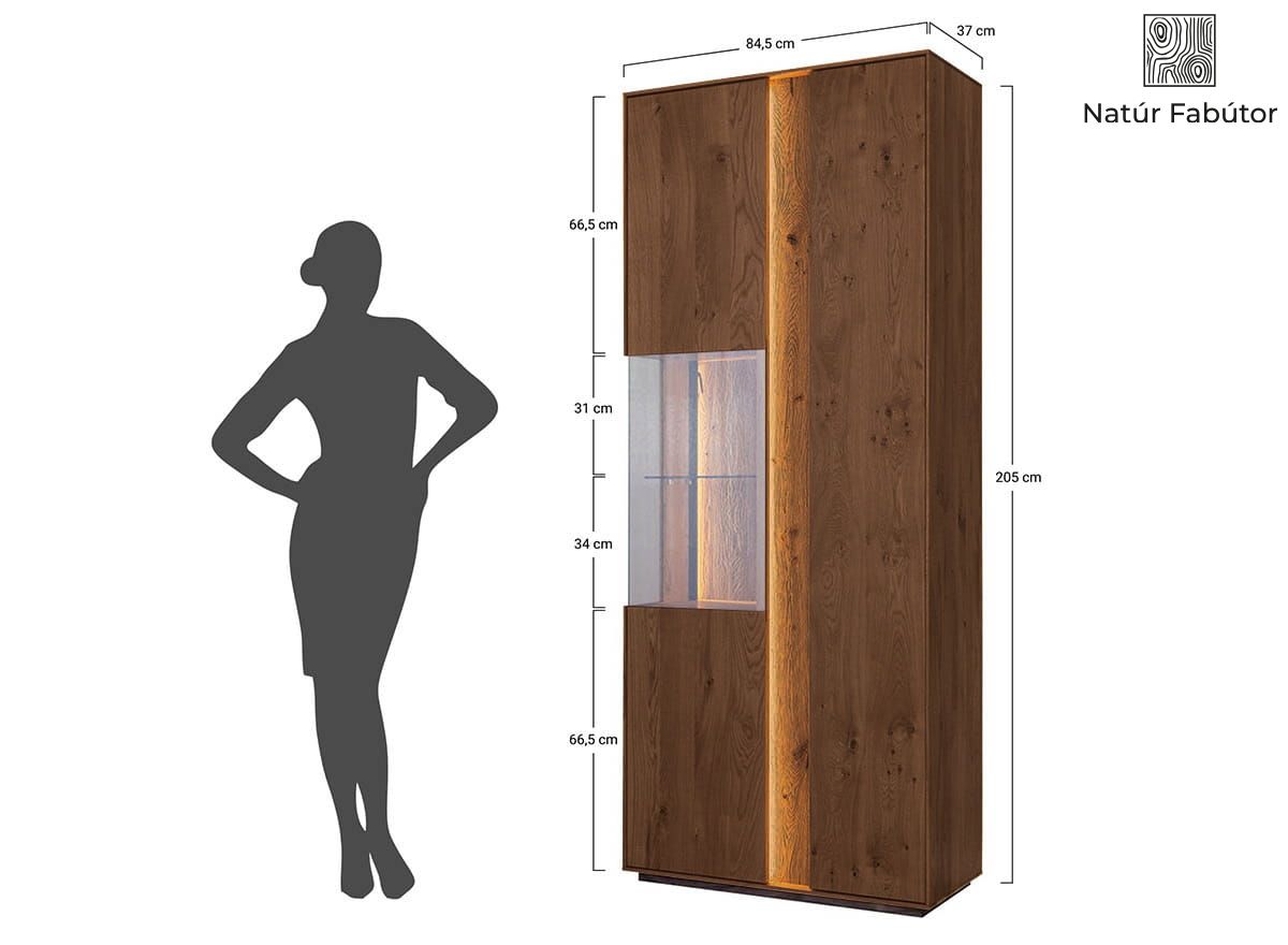 Kétajtós tölgyfa vitrin LED világítással, tabacco színben – Collodi