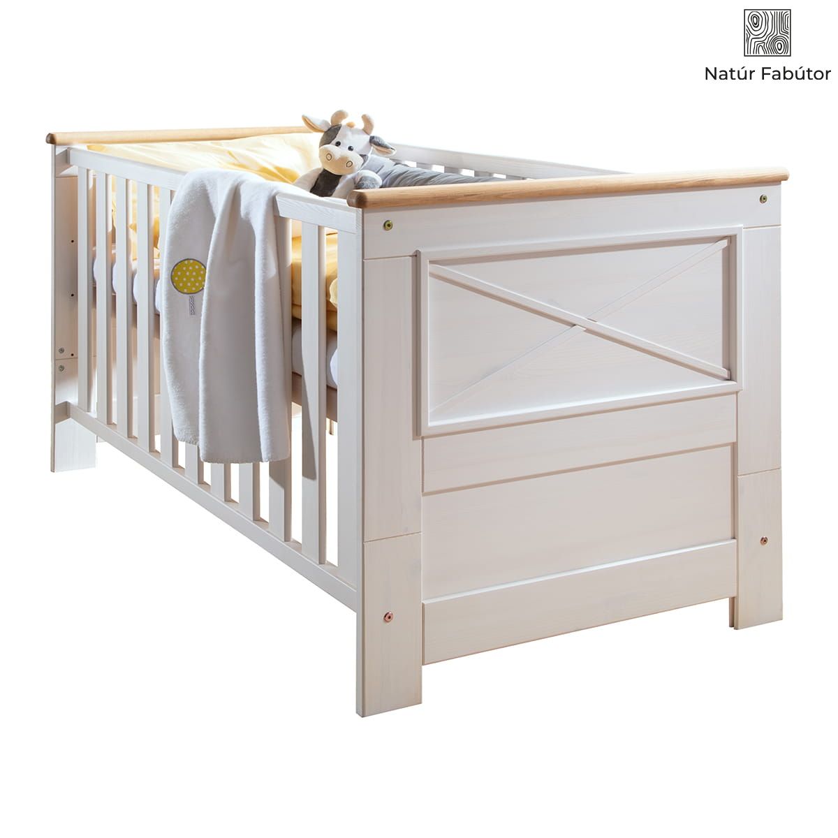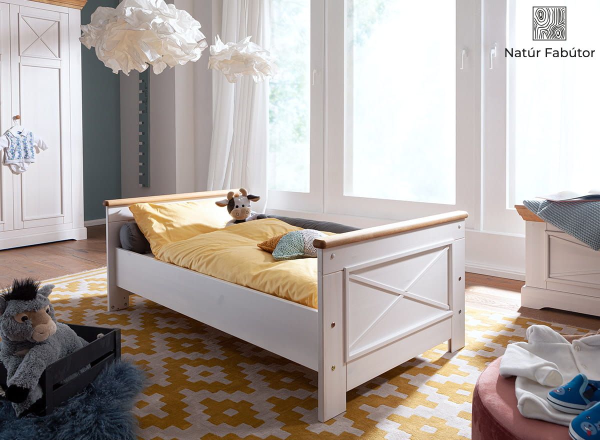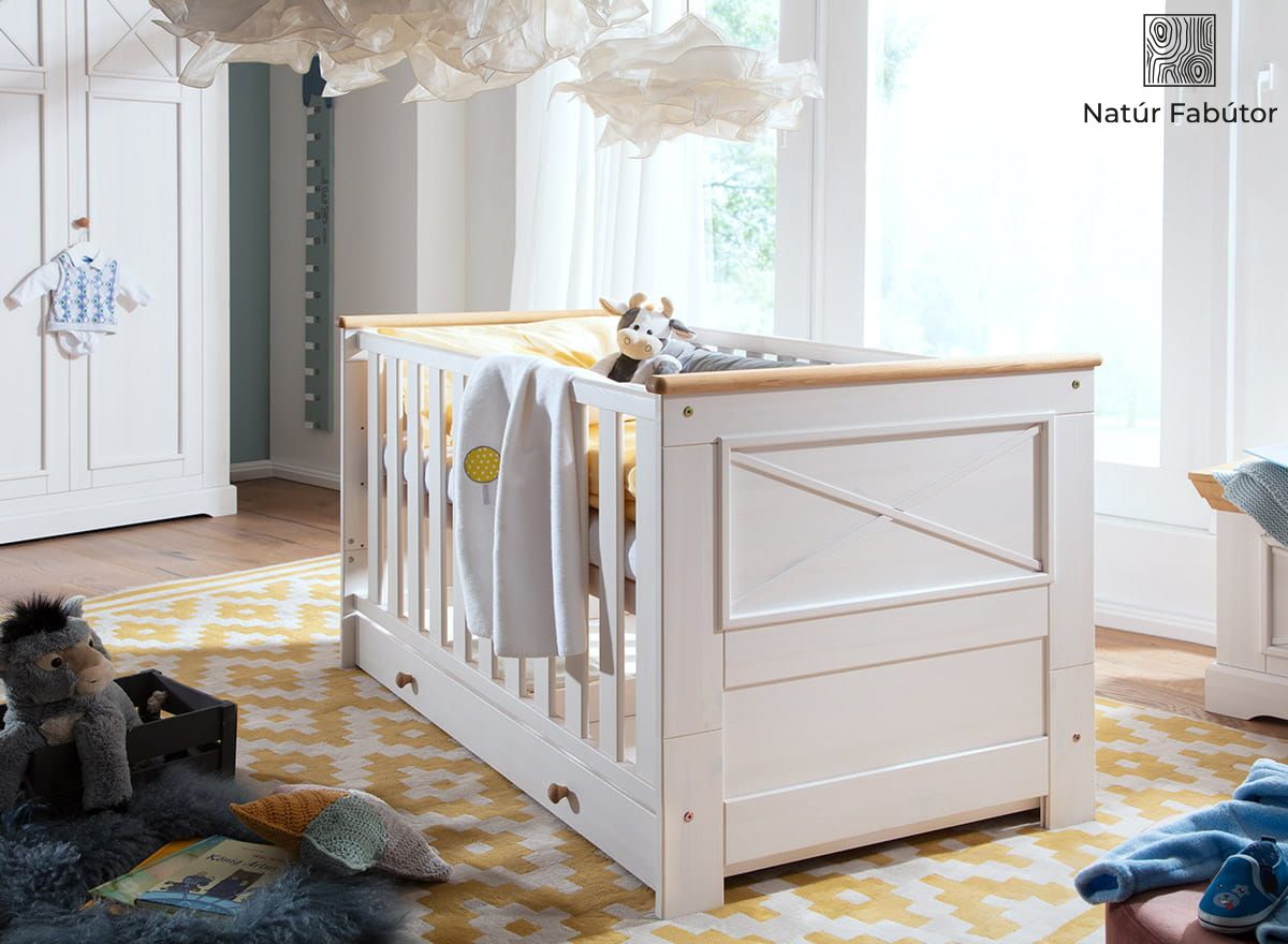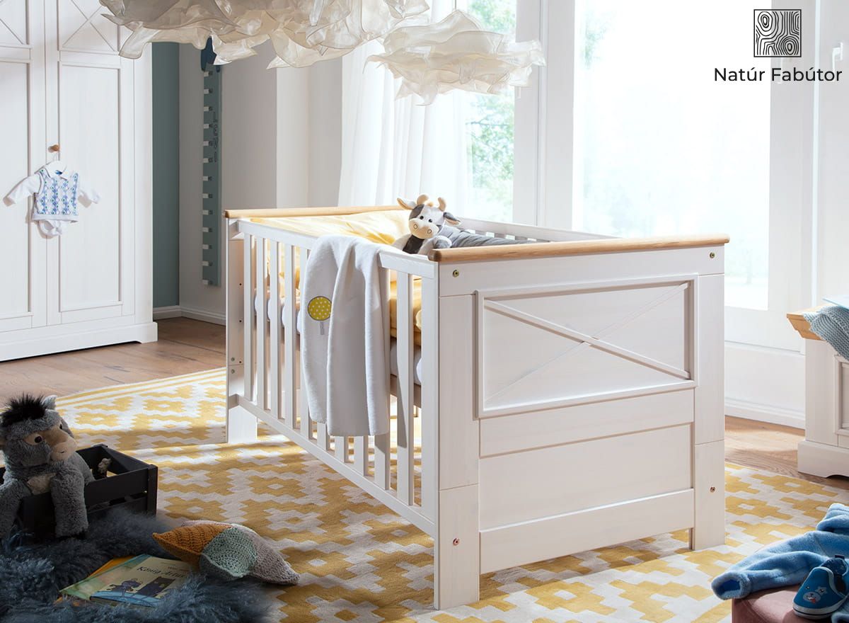 Tömörfa kiságy-gyerekágy fehér színben