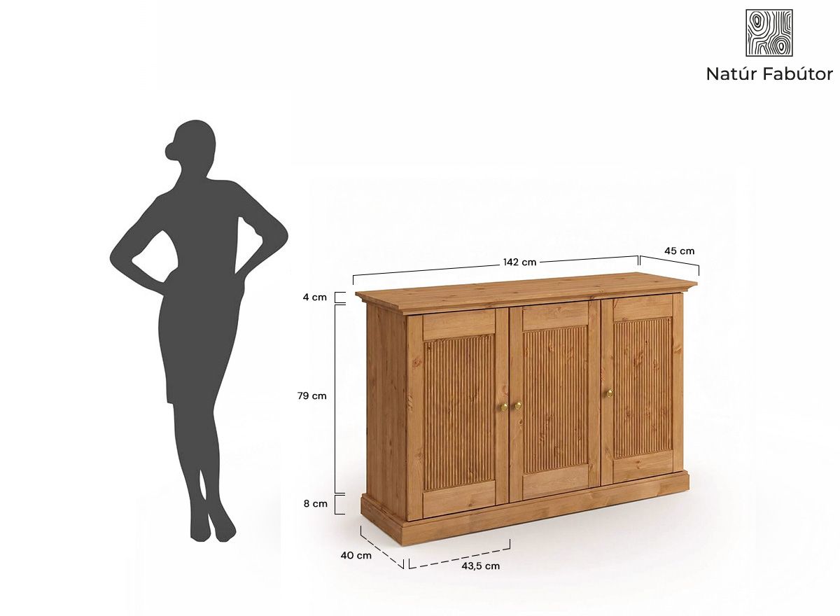 Komód, tömör fenyő, tölgyfa szín - Rosella