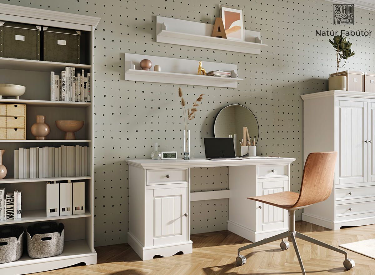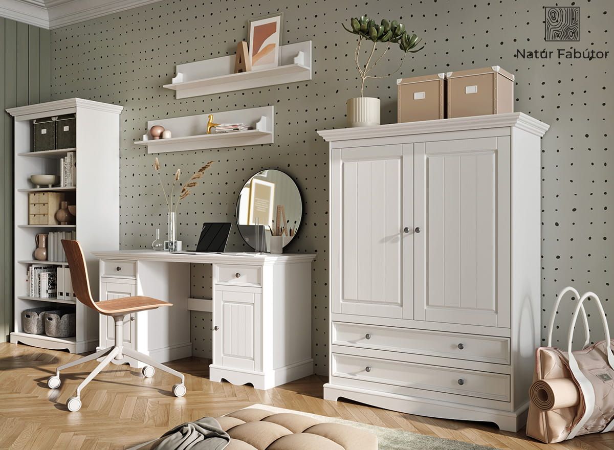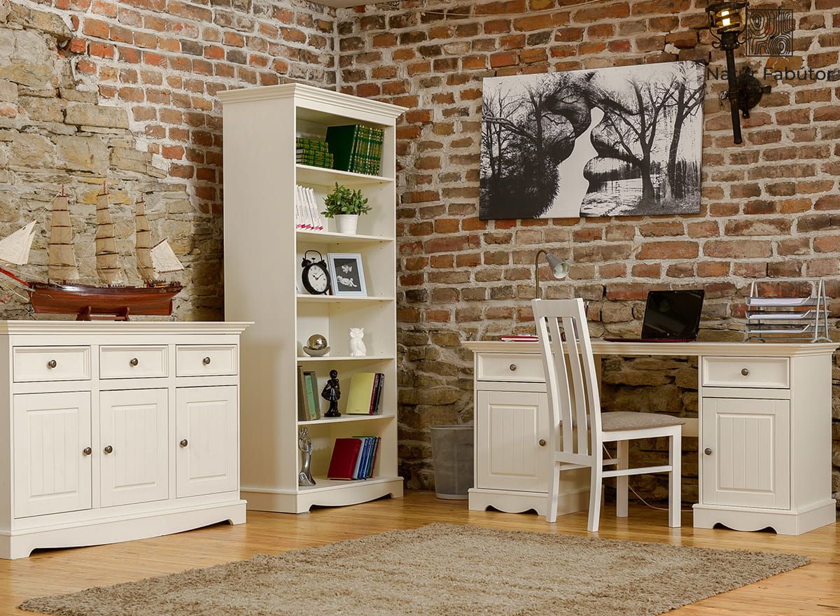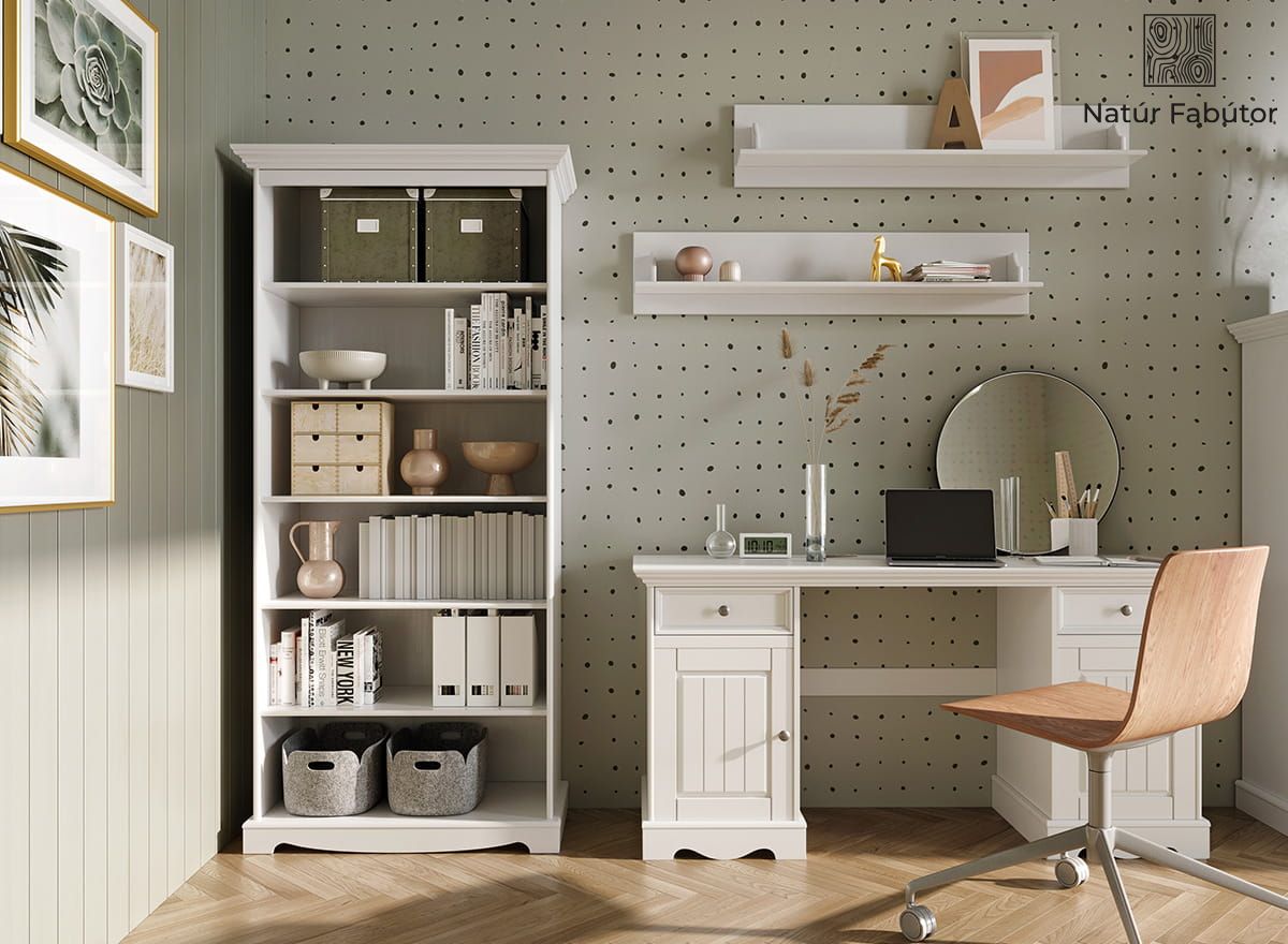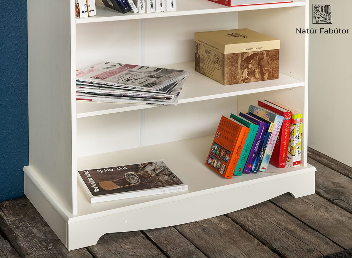 Fenyő könyvespolc Belluno Elegante. Gyönyörű fehér bútorok a nappaliba