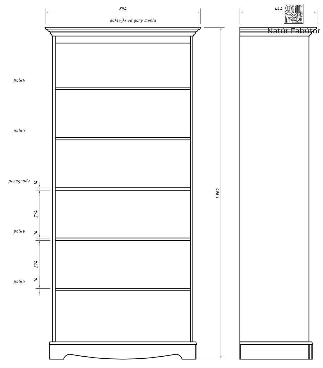 DÍSZÍTETT FEDŐLAP - a fenyő könyvespolc 5 cm vastag párkányra még tartósabbá teszi a bútort.