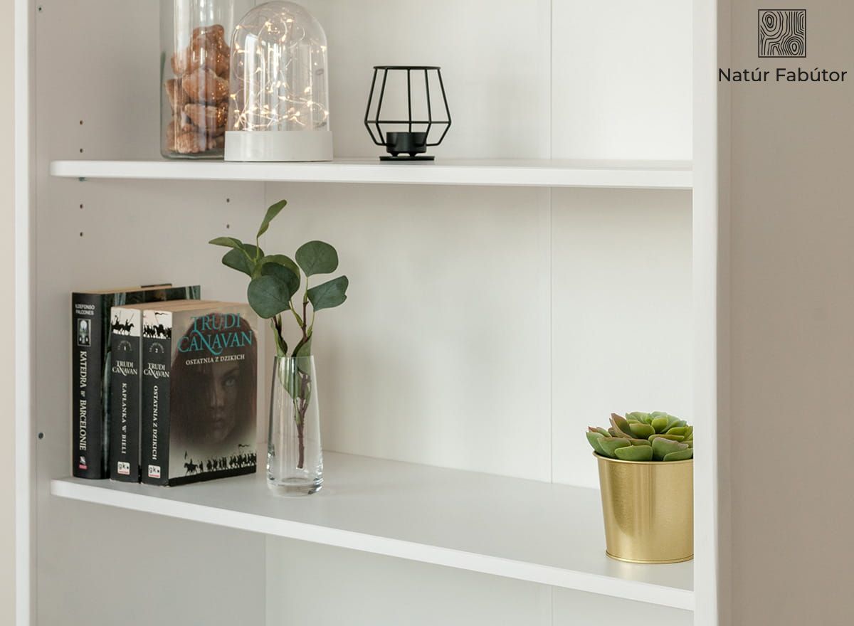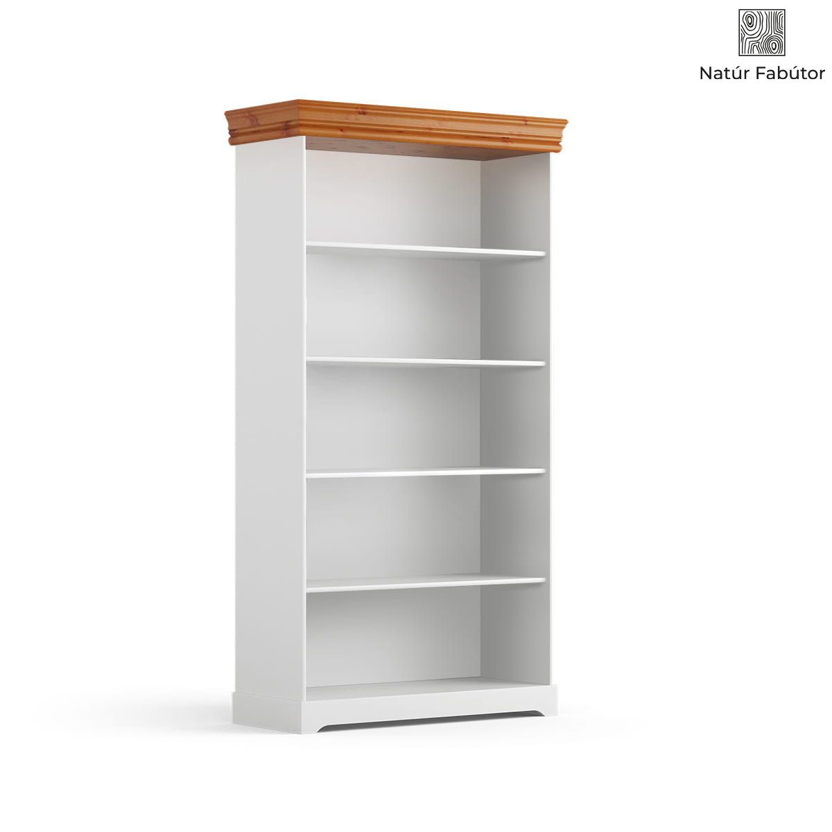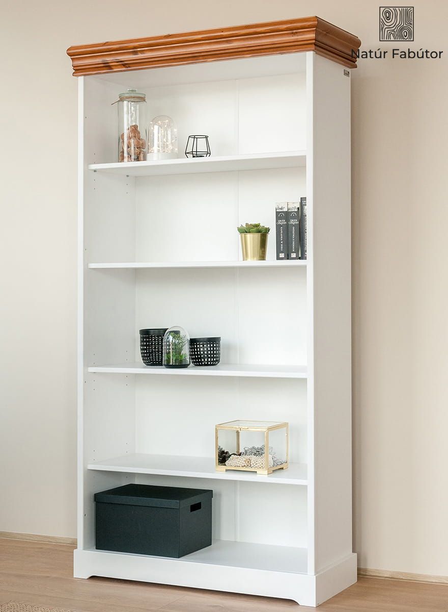 A fehér fabútorok az étkezőbe, a konyhába vagy a nappaliba a provence-i stílusra jellemzőek. A fehér bútorok a skandináv belsőépítészetben is népszerűek. Fehér színével, díszített tetejével és könnyű kialakításával a Toskania könyvespolc sokoldalú bútordarab, amely számos enteriőrhöz és stílushoz illik. A fehér fa könyvespolc egyaránt jól mutat majd egy skandináv, minimalista hálószobában és egy idilli, rusztikus konyhában, ahol az edények és konyhai kiegészítők tárolására lesz hasznos.