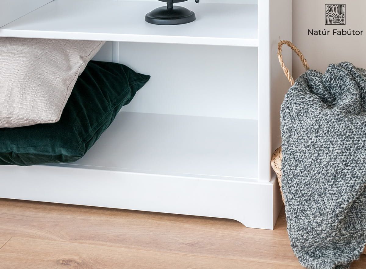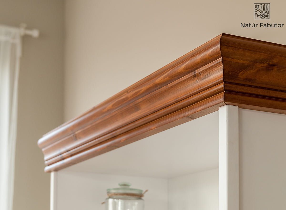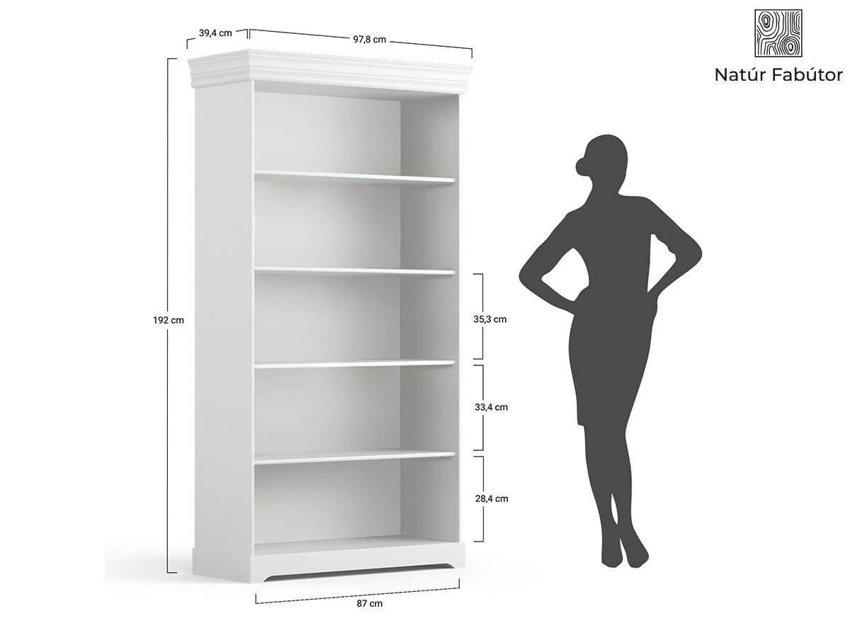 A fehér fabútorok az étkezőbe, a konyhába vagy a nappaliba a provence-i stílusra jellemzőek. A fehér bútorok a skandináv belsőépítészetben is népszerűek. Fehér színével, díszített tetejével és könnyű kialakításával a Toskania könyvespolc sokoldalú bútordarab, amely számos enteriőrhöz és stílushoz illik. A fehér fa könyvespolc egyaránt jól mutat majd egy skandináv, minimalista hálószobában és egy idilli, rusztikus konyhában, ahol az edények és konyhai kiegészítők tárolására lesz hasznos.