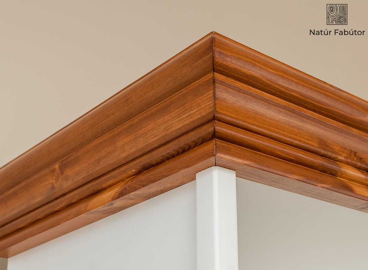 A fenyőfa képes a nedvességet megkötni majd visszaadni azt a környezetbe, így szabályozza a páratartalom szintjét. Ez jótékony hatással van a helyiség mikroklímájára és az emberi egészségre. A fenyő elektrosztatikus tulajdonságokkal is rendelkezik, így a porszemcséket nem vonzza a bútorok felülete. Ezek a tulajdonságok biztonságossá teszik a fenyőbútorokat az allergiások számára és segítenek tisztán és rendben tartani azokat. A bútort belülről egy rétegben fehérre festettük, melyen a fa természetes erezete jobban átüt, mint a termék külsején. Idővel a csomók intenzívebb színt vehetnek fel, ami a fa természetes öregedési folyamata.