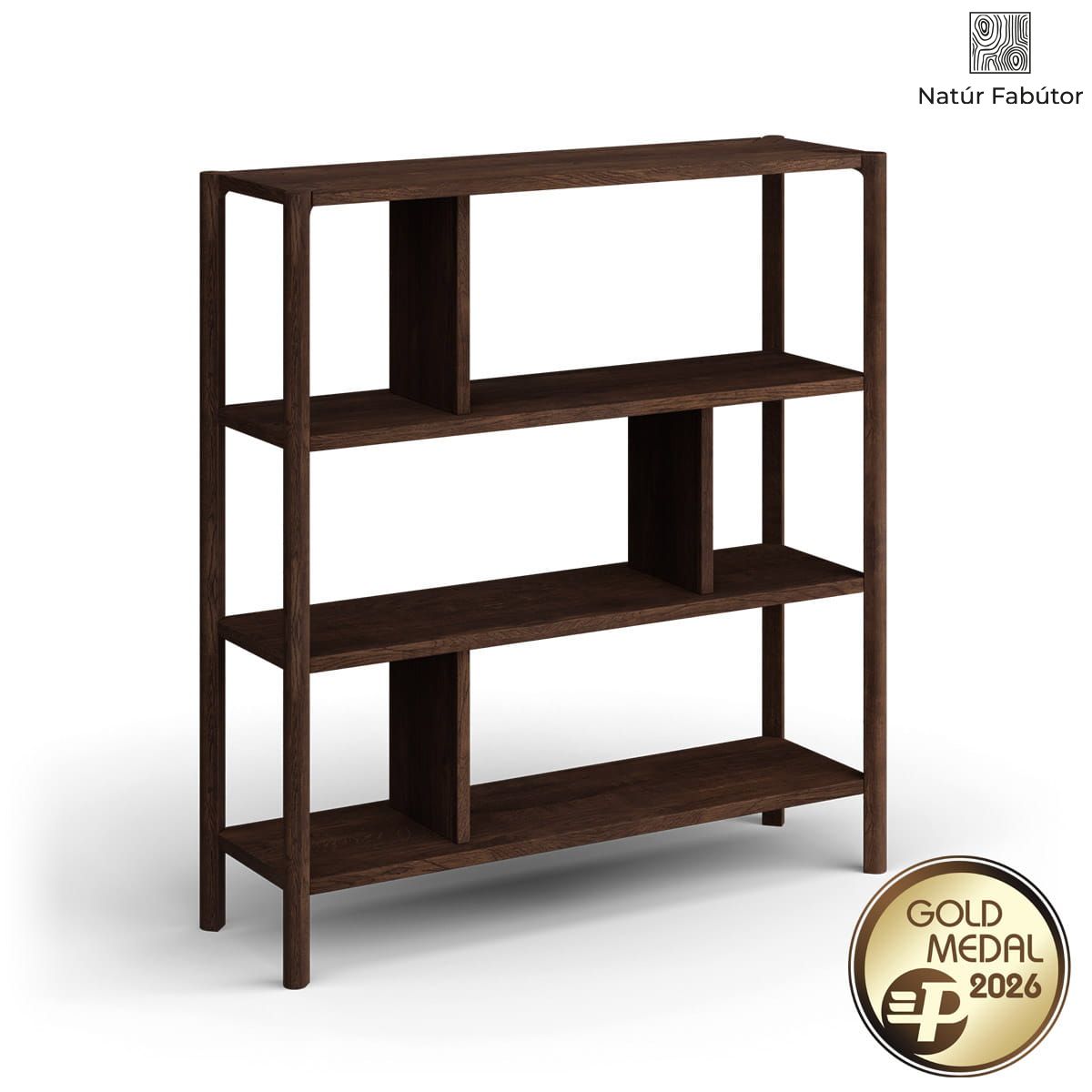 A Campi kollekció dohányszínű, sötét árnyalatú változata azoknak készült, akik értékelik az erőteljes megjelenést és a visszafogott eleganciát. Mélybarna színe kiemeli a bútor modern karakterét, és harmonikusan illeszkedik a világos falakhoz, üvegfelületekhez vagy fémes kiegészítőkhöz. Ez a polc nemcsak praktikus tárolóelem, hanem dekoratív fókuszpont is bármely helyiségben. Kiváló választás irodába, nappaliba vagy olvasósarokba, ahol a rendezettség és az esztétikum egyaránt fontos szerepet kapnak.