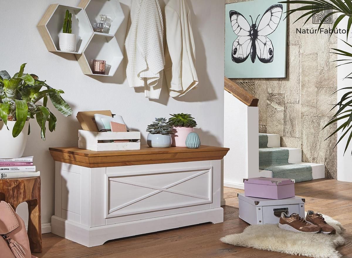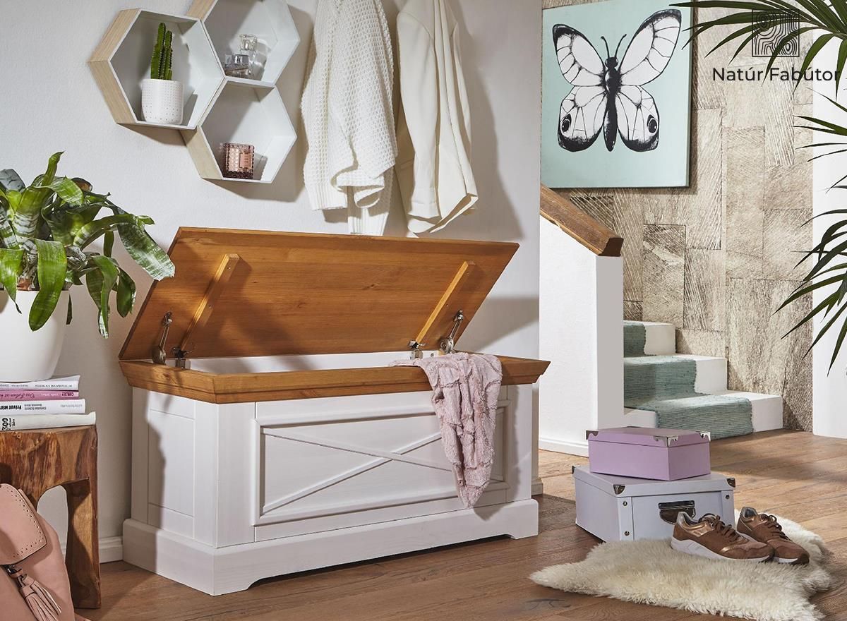 A tömörfa finn fenyő tartós anyagának köszönhetően, nyugodtan ülhet a láda tetején átöltözés vagy cipőfelvétel közben. Néhány puha párnával még kényelmesebbé teheti az ülőfelületet.