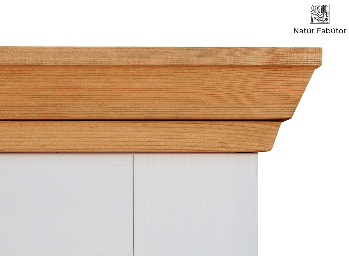 Rusztikus díszítések – A Marone kollekció fenyőfából készült ládáját faragott korona díszíti. A masszív talapzatot finom faragások lágyítják, ami könnyedséget ad neki, miközben megőrzi stabilitását. A láda elülső részén található díszlécek kiemelik a bútor rusztikus jellegét.