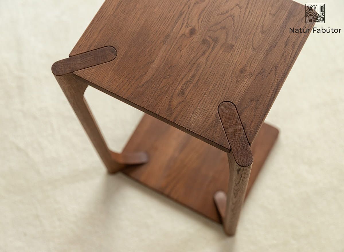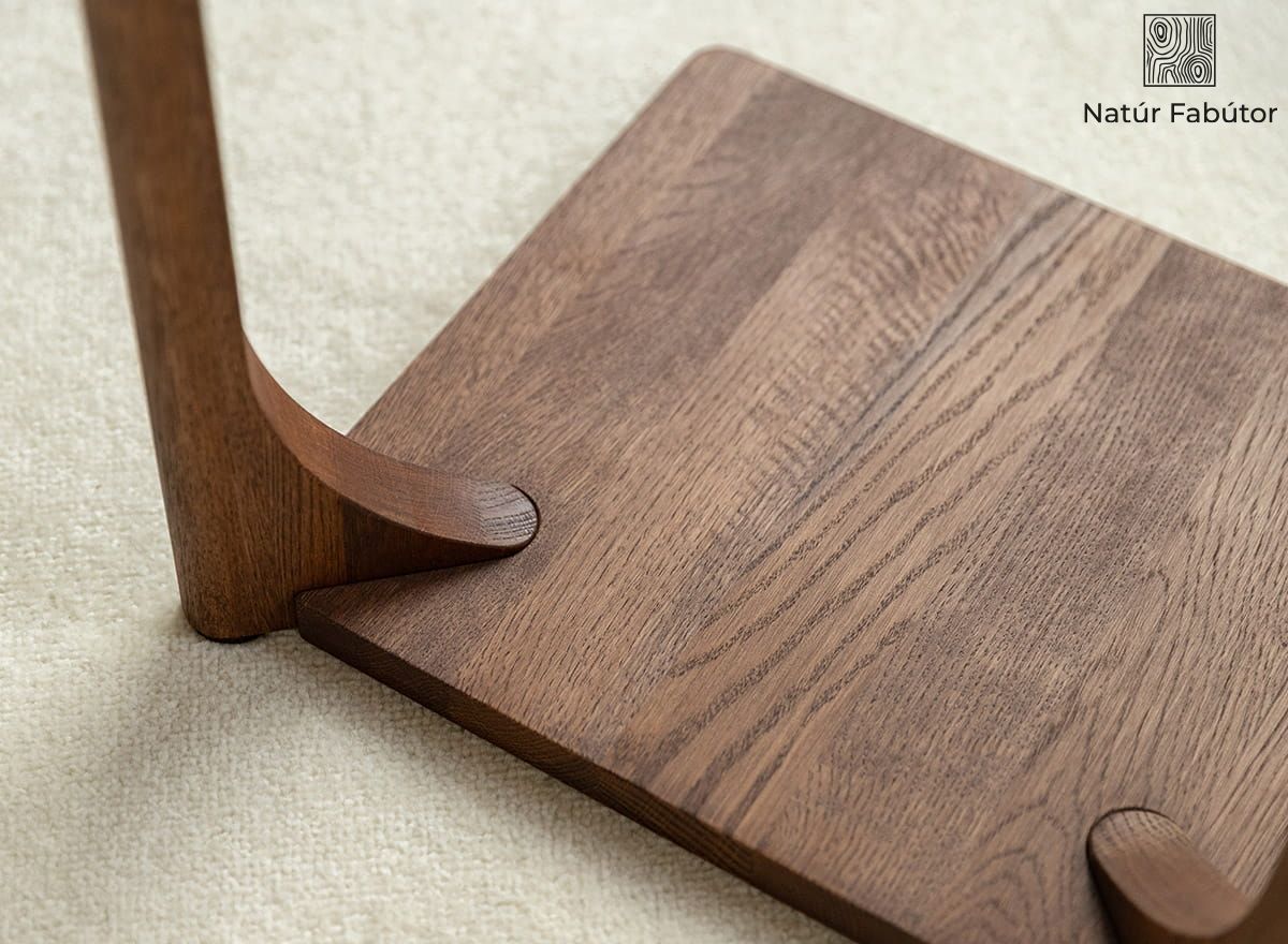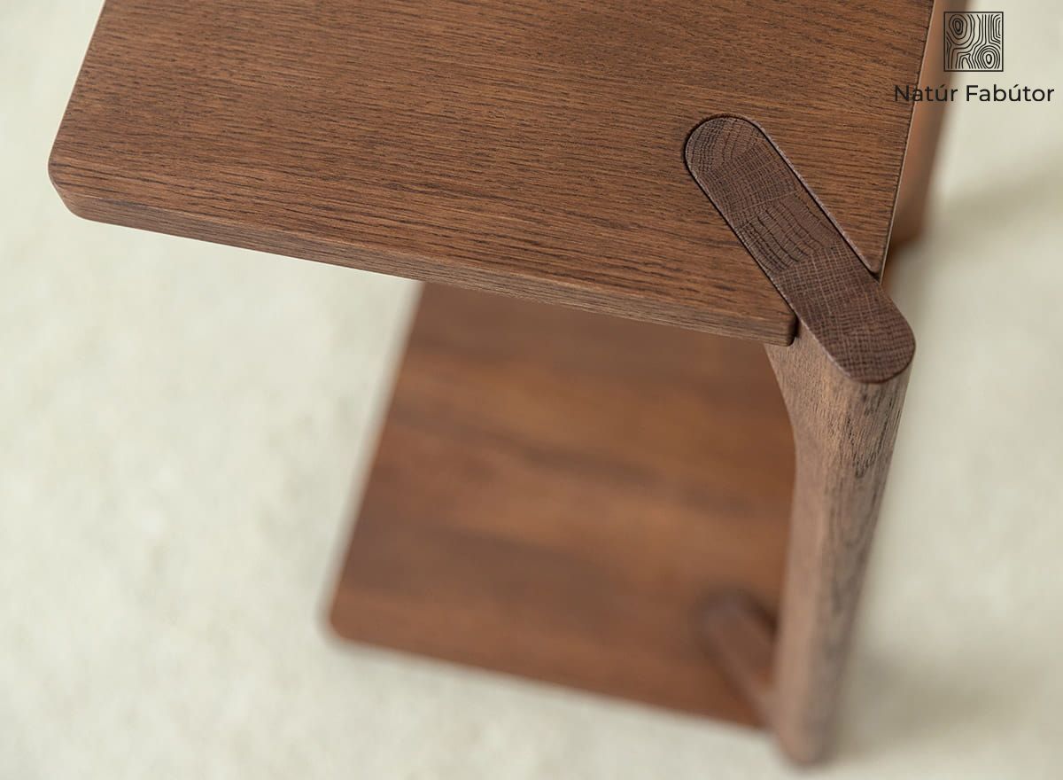 Kiváló minőségű tömör tölgyfát használtunk – egy olyan erős és stabil anyagot, amely ideális választás prémium kategóriás, tartós bútorokhoz. A felületet természetes Borma olajjal, dohányszínű árnyalatban kezeltük, amely gazdag, de nem egységes tónust ad a fának, így a természetes erezet szépsége teljes egészében látható marad.