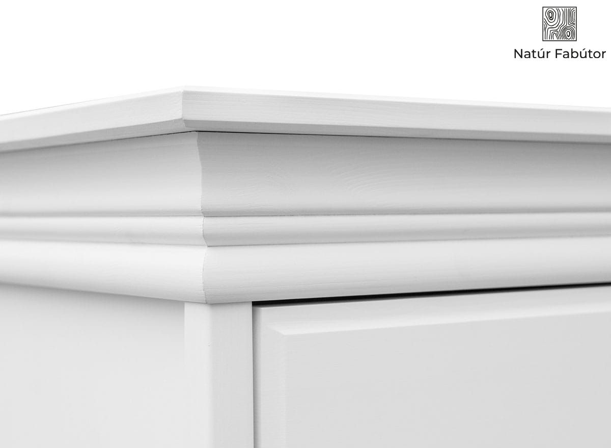TERMÉSZETES FENYŐ - kiváló minőségű skandináv fenyőfát használtunk ennek a tágas fehér ruhásszekrénynek az elkészítéséhez.