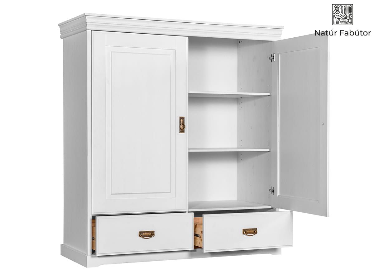HATALMAS POLCOK - a fehér ruhásszekrény legnagyobb előnye a tágas szekrény. Belül a széles polcok sok ruhát befogadnak.