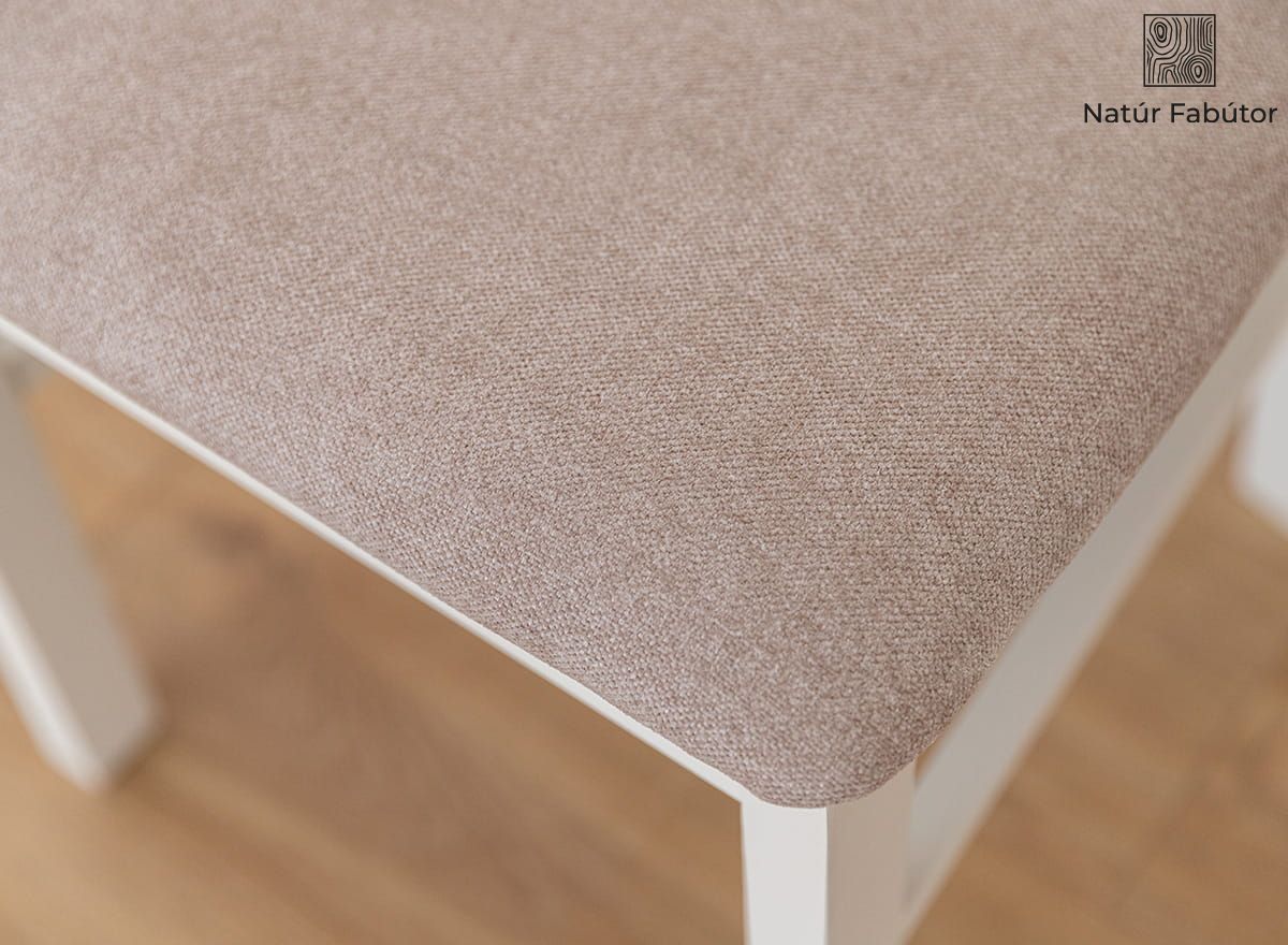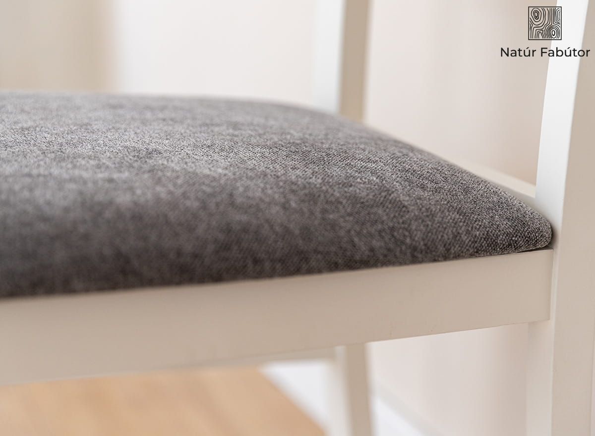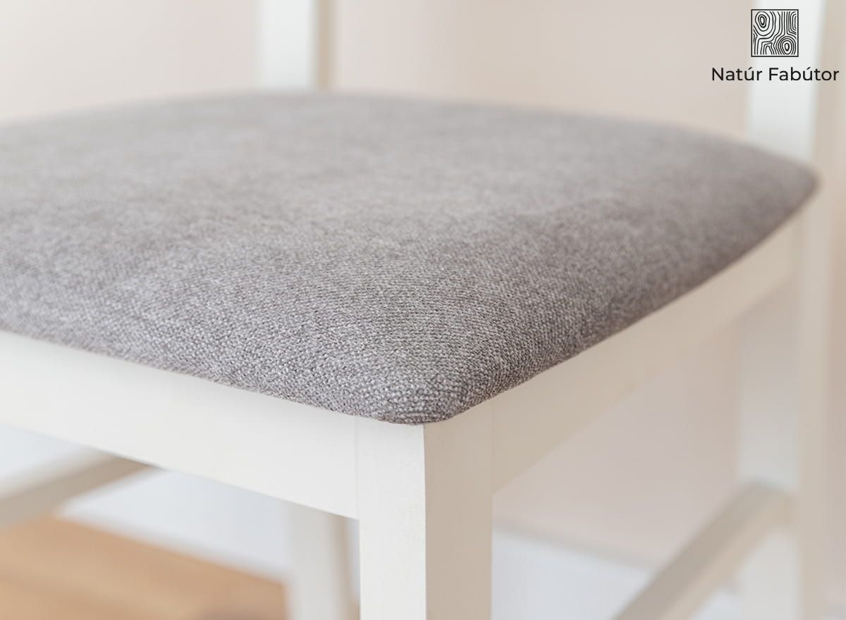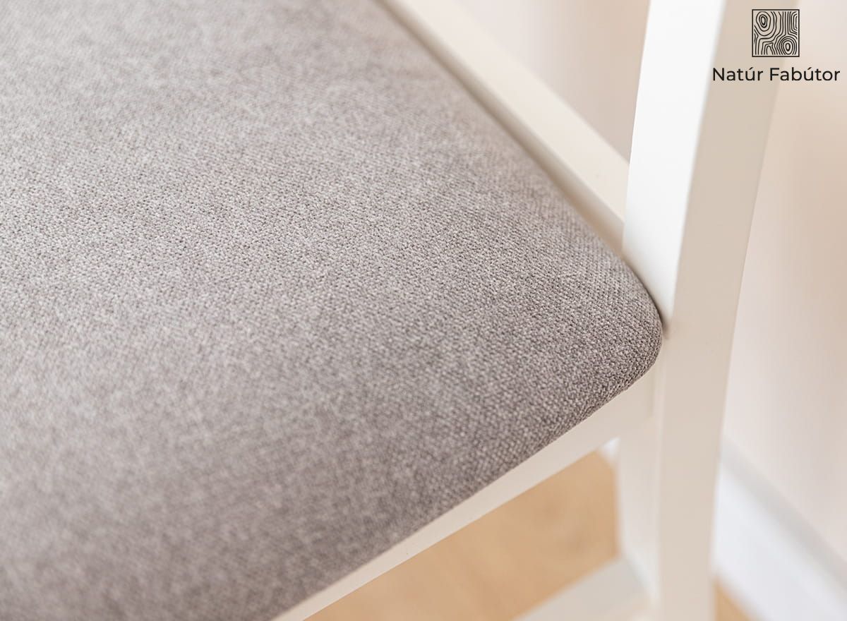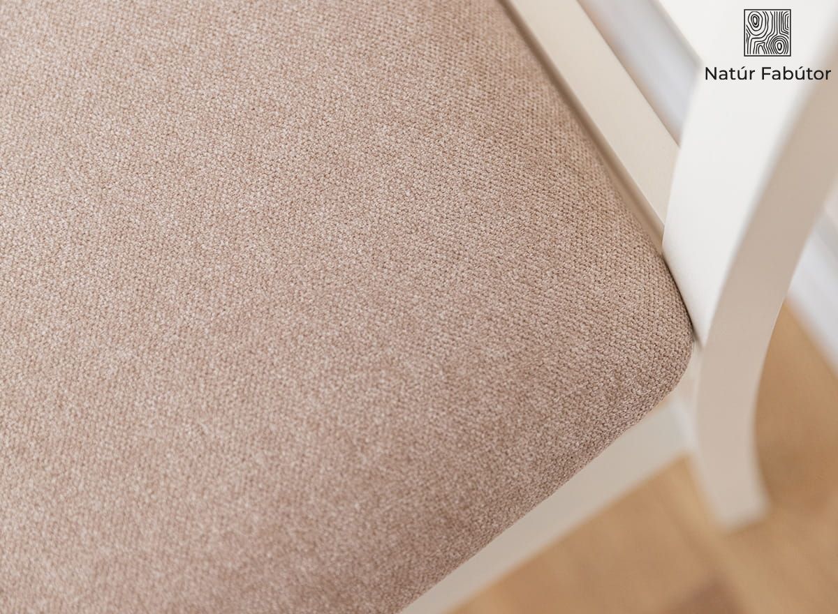 A Belluno Elegante kollekció fehér, bükkfából készült széke egy olyan bútordarab, amely egyesíti a kényelmet, az eleganciát és az érdekes designt. A kiváló kivitelezés, a legjobb anyag - valódi fa - használata és az átgondolt ergonómia garantálja a vásárló elégedettségét. A Belluno Elegante szék magas háttámlája támogatja a gerinc érzékeny nyaki szakaszát. A széket természetes vízbázisú festékkel festettük, világos, meleg, krémfehér árnyalatban. A festék 85%-os fedésének köszönhetően láthatóvá válik a fa természetes szerkezete. Jelenléte bizonyítja, hogy a bútordarab valódi tömör bükkfából készült. A szék ülőfelülete kárpittal van bevonva, ami növeli az ülés kényelmét. A kárpit bevonat használata a bútorokon hangulatosabbá teszi a belső teret.