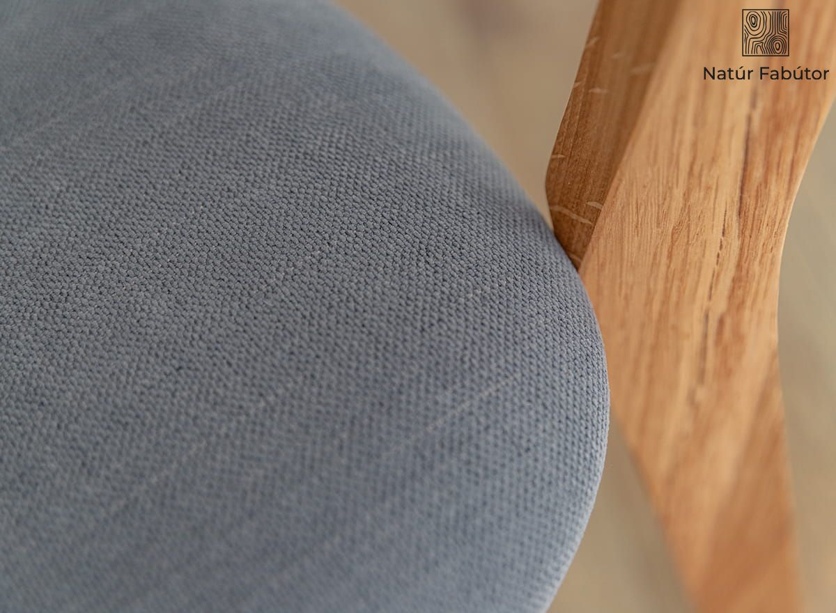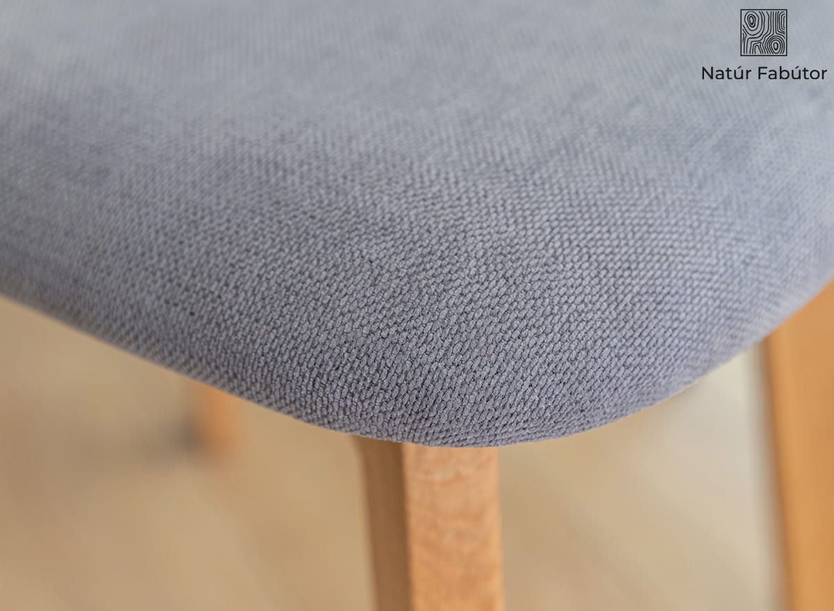 A fa szék grafitszürke ülőfelülettel harmonikusan ötvözi a fa semleges színeit a szürke anyaggal, ami élőben nagyon elegánsan mutat. A természetes faanyag egyedi jellege, amelyet szabálytalan és egyedi szemcsék és csomók jellemeznek, tovább növeli a nemességet. A szín a monitor beállításaitól függően változhat.