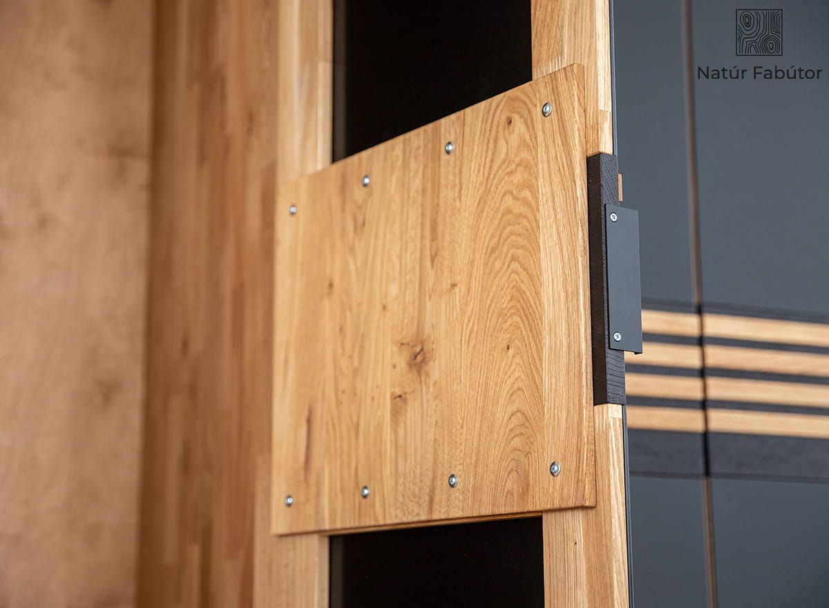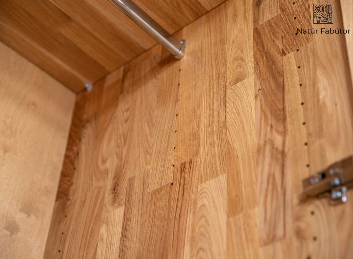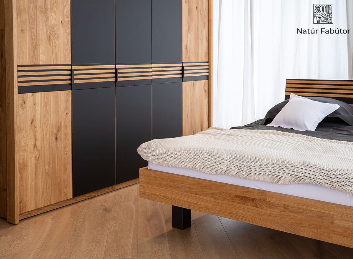 Tölgyből készült szekrény díszlécekkel - természetes báj a hálószobában