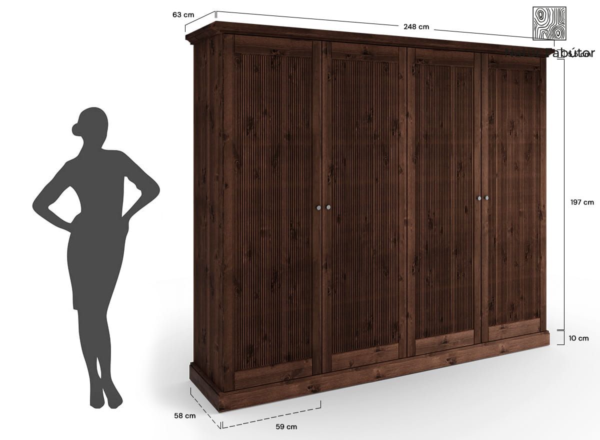 Négyajtós fenyő szekrény – Rosella, tabacco színben