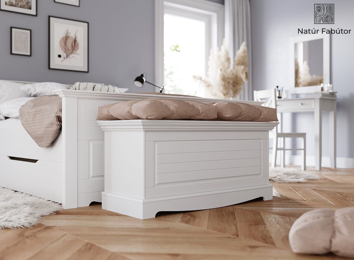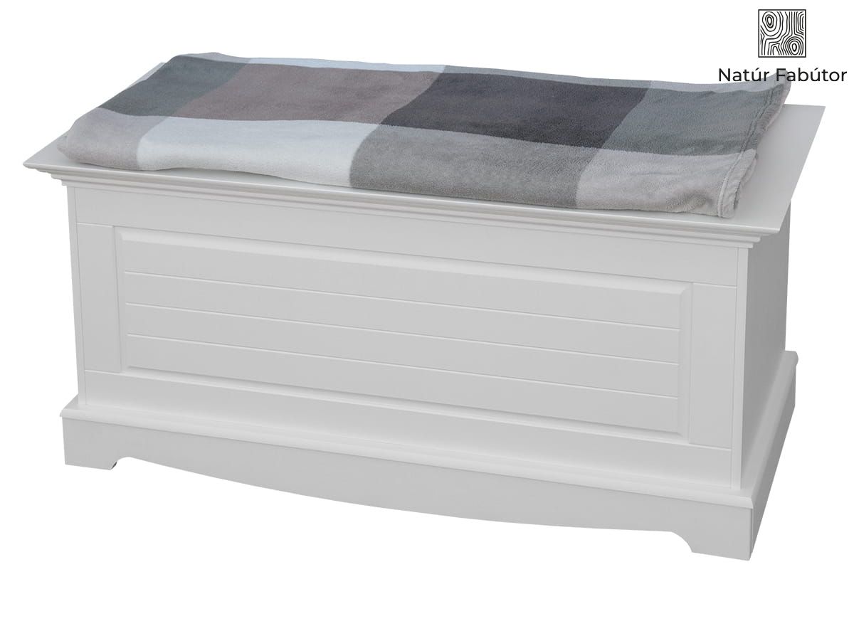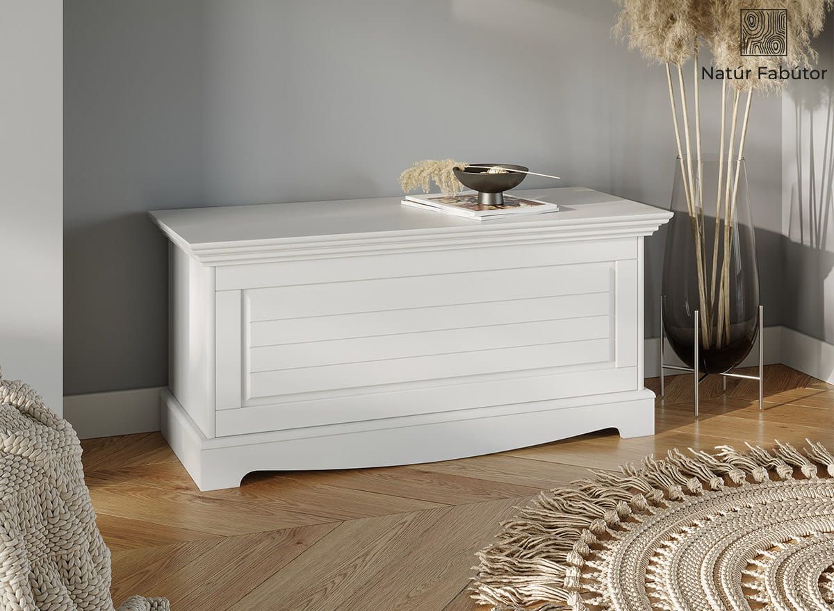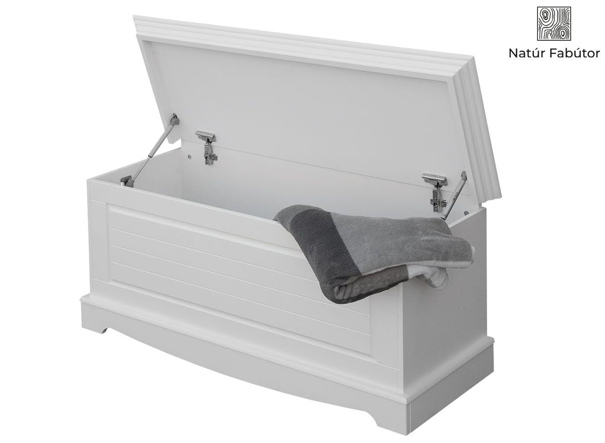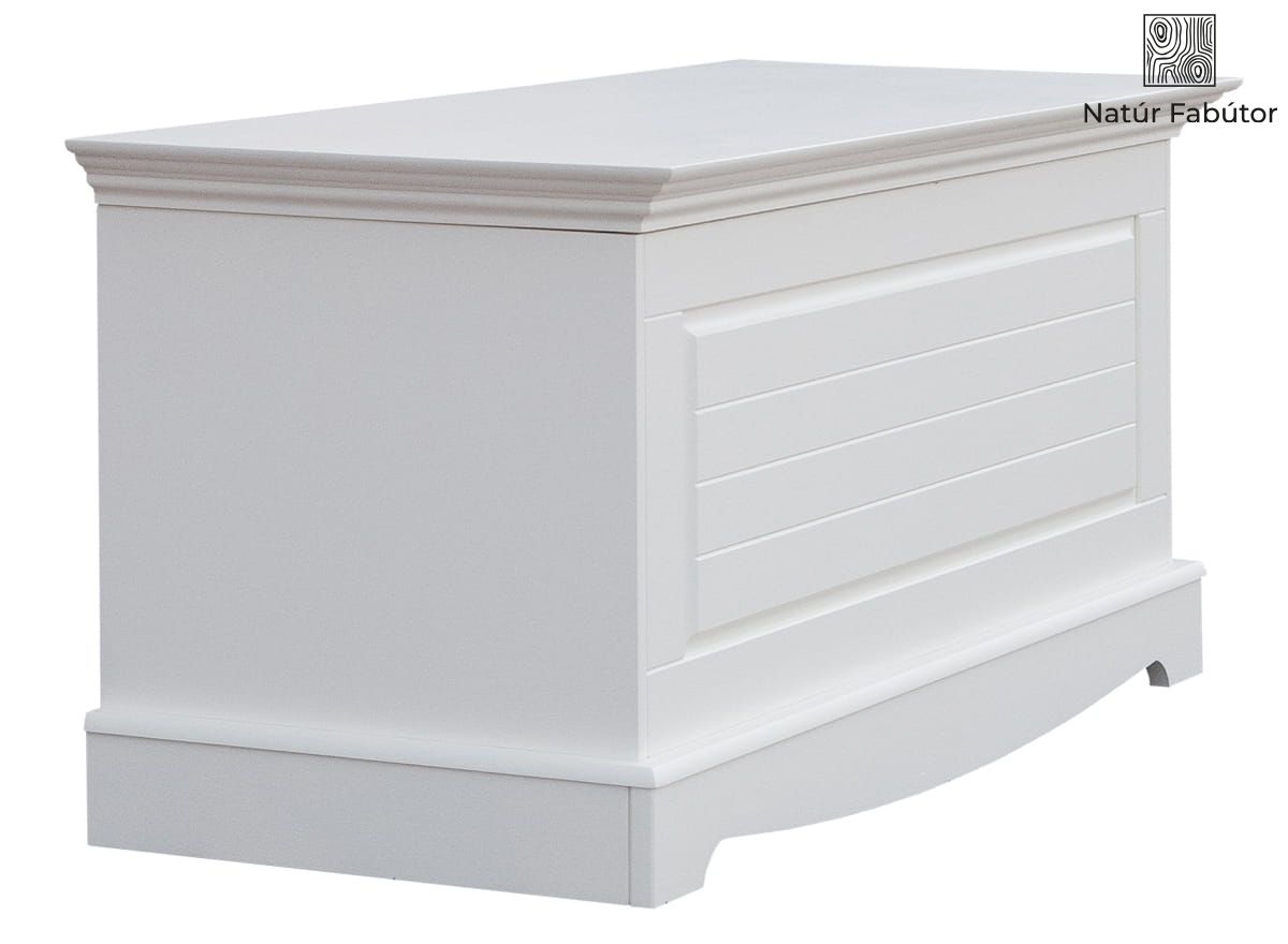 Természetes anyag – A fehér láda tömör, finn fenyőből készül. A láda bútorteste fehér, fedőlapja fehér színű. A 100%-ig természetes anyagból készült láda megjelenése egyedülálló. A természetes fabútorok egycsapásra felidézik az erdő megnyugtató, ellazító hatását otthonában. Csak egy pillanatra hajoljon a láda fedeléhez, és szippantsa magába a fa hamisítatlan illatát!