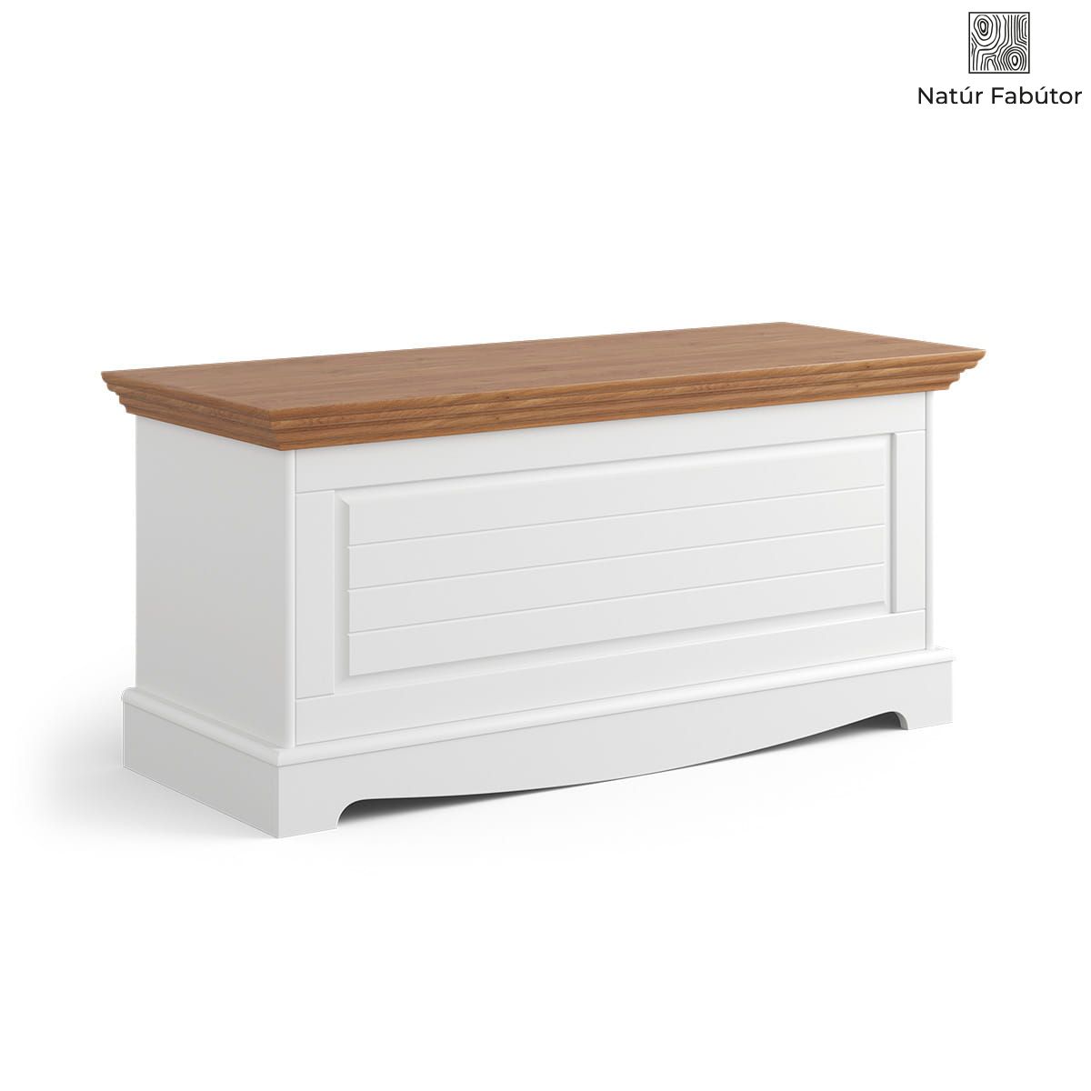 Természetes anyag – A fehér láda tömör, finn fenyőből készült. A láda bútorteste fehér, fedőlapja tölgy színű. A 100%-ig természetes anyagból készült láda kivételes megjelenéssel és sajátos illattal rendelkezik. Elég egy pillanatra a bútor fedeléhez hajolunk, hogy egy mély lélegzetvétel kíséretében a természet felpezsdítő illatával töltődjünk fel.