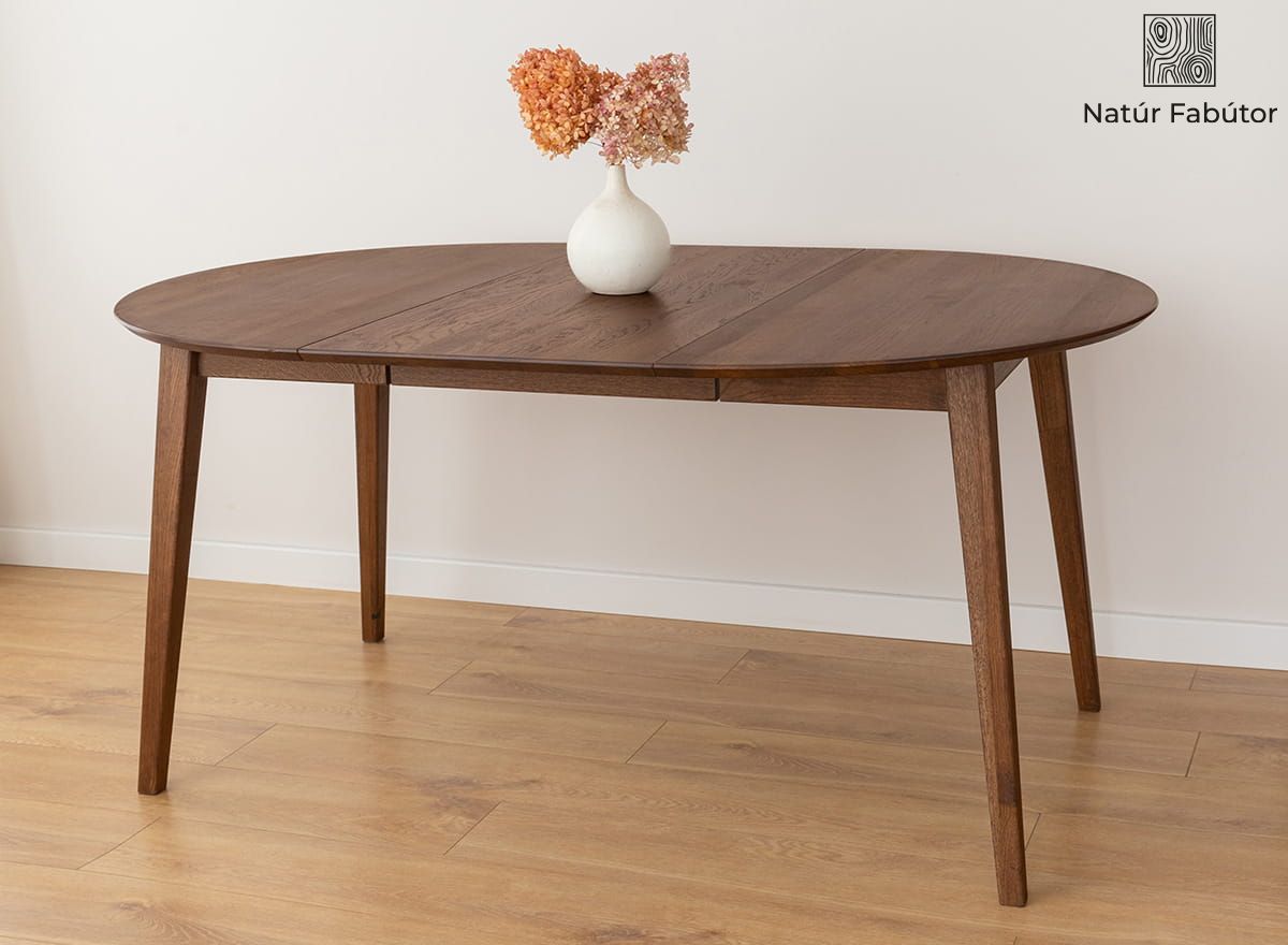 Tölgyfa asztal, kihúzható, kör alakú, tabacco színben, 110 - 160 cm – Orbetello