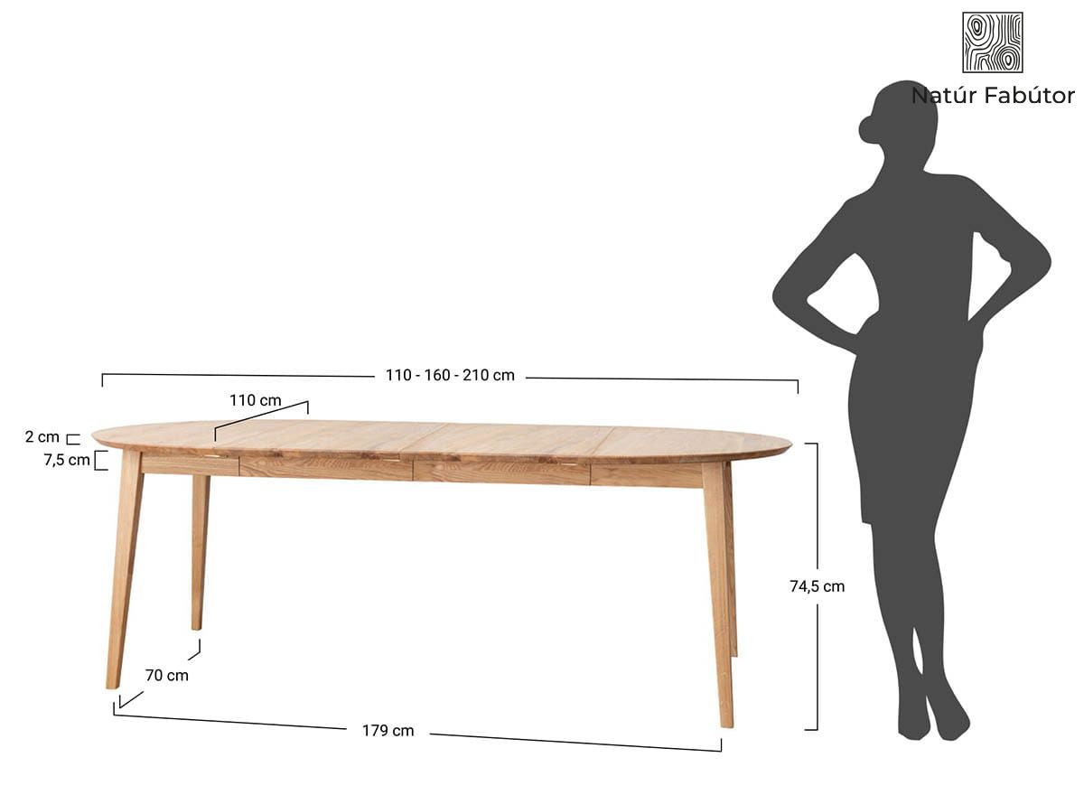 Tölgyfa asztal, kihúzható, kör alakú, tabacco színben, 110 - 210 cm – Orbetello
