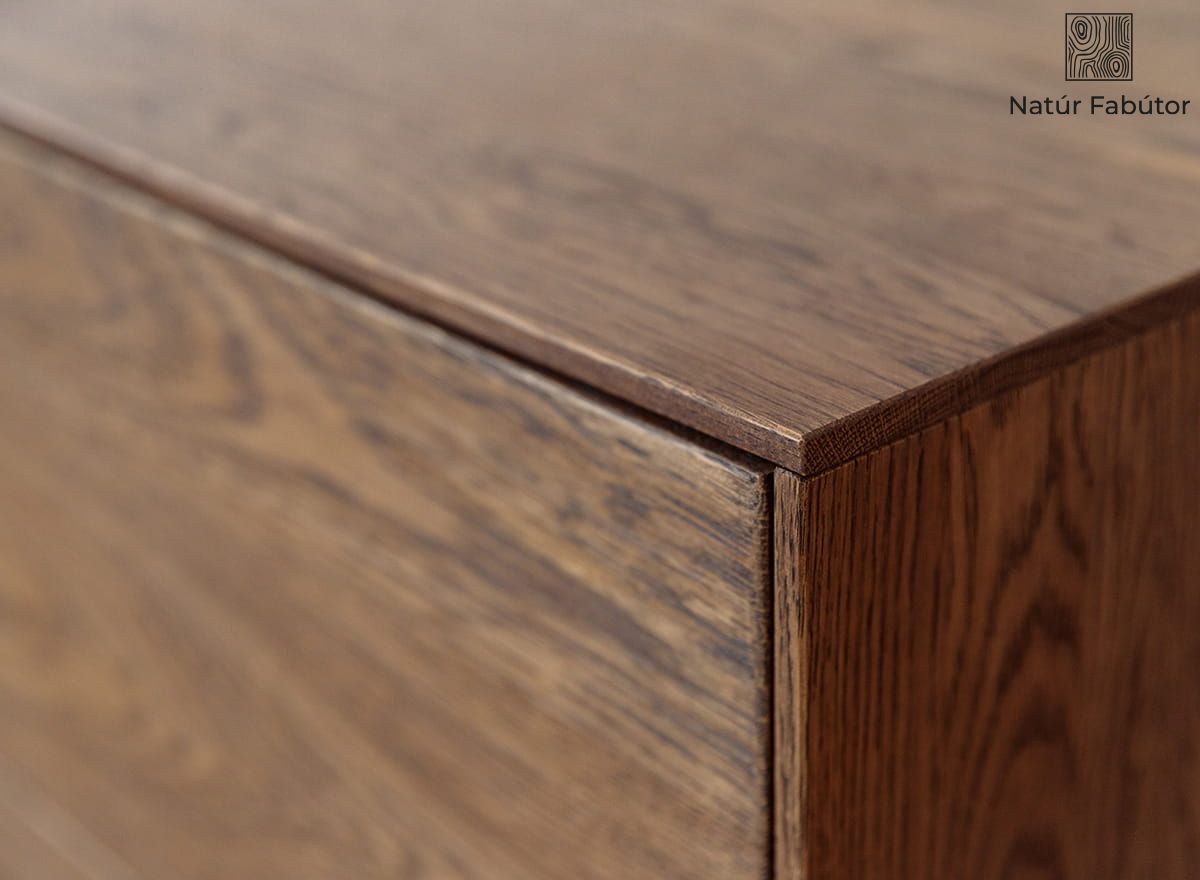 A minőség minden részletben érezhető – a tip-on rendszerben is, amely lehetővé teszi az ajtók és fiókok könnyed, egyetlen érintésre történő nyitását. Ennek köszönhetően nincs szükség fogantyúkra, amelyek gyakran megbontják a bútor letisztult vonalvezetését. Az olajozott felület megóvja a fát a mindennapi használat okozta kopástól, míg a masszív szerkezet gond nélkül elbírja a nagyobb televíziót és az összes szükséges berendezést – anélkül, hogy elmozdulna, inogna vagy zavaró hangokat keltene.