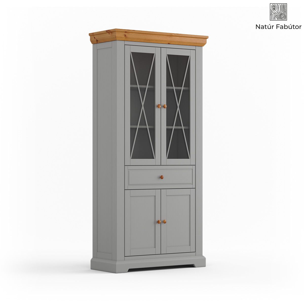Vitrin, fa, kétajtós, üvegezett, hamuszürke – Marone Elite