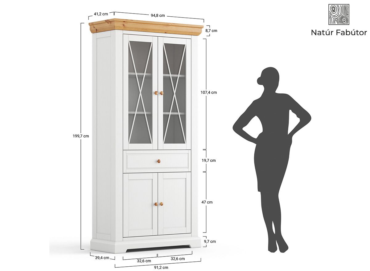 Az üvegezett ajtók mögött ízlésesen bemutathatja kedvenc tárgyait – könyveket, elegáns porcelánt vagy családi emlékeket. Az alsó szekrények és a fiók ideálisak mindarra, amit inkább elrejtene a vendégek elől. És ami a legjobb: tágas kialakítása ellenére sem nehézkes látványú – könnyed, arányos és átgondolt formatervezés jellemzi. Ez a bútor tökéletesen ötvözi az esztétikát és a kényelmet – pontosan azt nyújtja, amit keres.