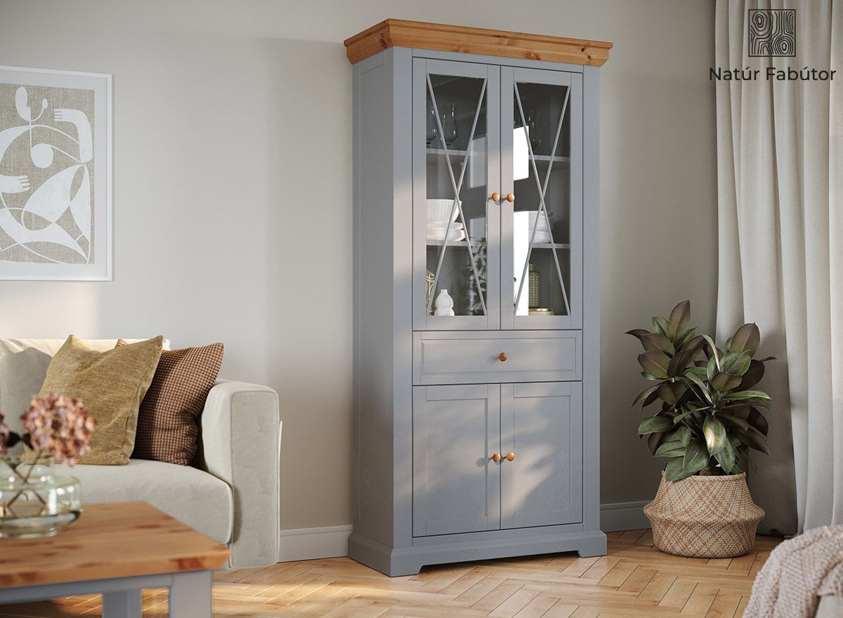 Kétszárnyú, üveges fa vitrin – hamuszürke Marone Elite