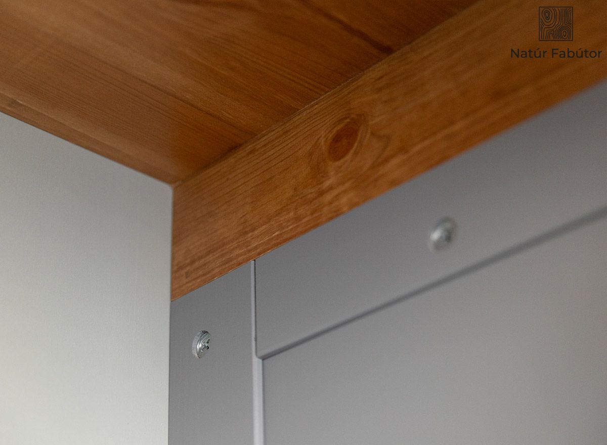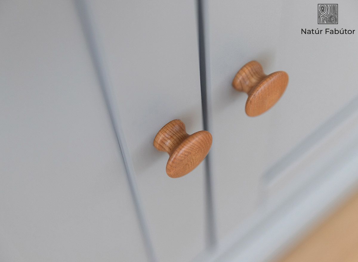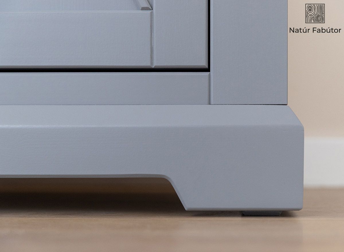 A finn fenyő számos előnnyel rendelkezik. Különösen szép erezete van, emellett tartóssága is kiemelkedő. Az ebből az anyagból készült bútor hosszú távú befektetést jelent. A felületet vízbázisú festék borítja, amely finoman kiemeli a fa természetes struktúráját, és még több bájt kölcsönöz neki. A fa szerelvények további harmonikus részletként illeszkednek a bútor stílusához. A halk záródás pedig garantálja a kényelmes használatot – nincs zaj, nincs csapkodás, csak finom, gördülékeny működés.