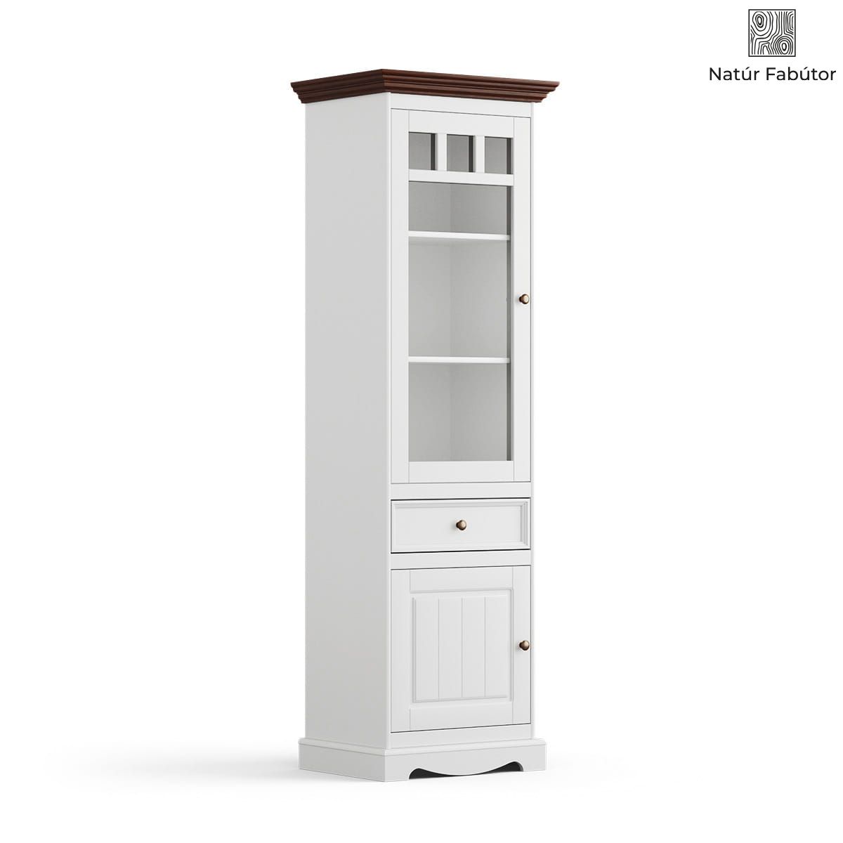 Vitrin keskeny fenyő balra nyíló - fehér/dió - Belluno Elegante