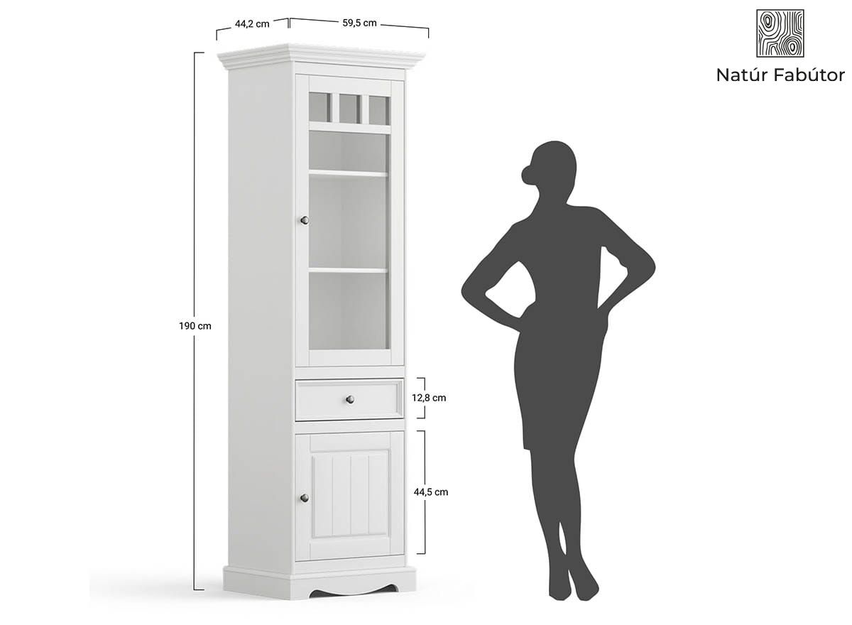 Belluno Elegante keskeny fehér fenyő vitrin