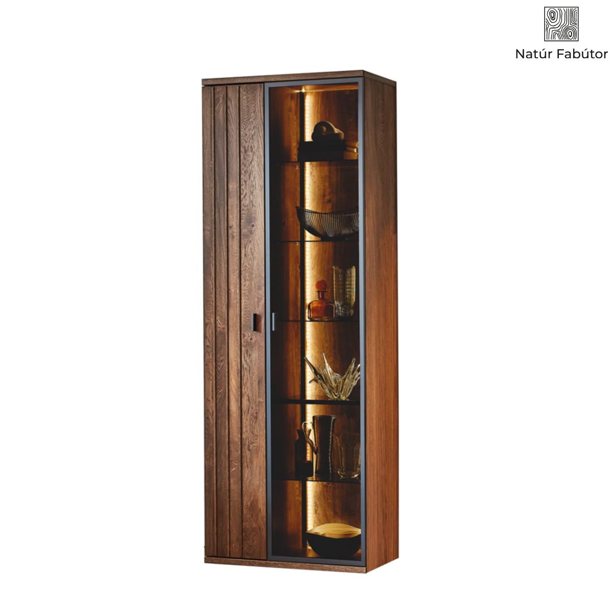 A Borgo kollekció kétszárnyú vitrinje tágas belső térrel és polcokkal rendelkezik, így hatékonyan rendszerezhető a tér. Tökéletesen alkalmas különféle tárgyak, könyvek, étkészletek, dísztárgyak vagy utazásból származó emlékek tárolására és kiállítására. Az üvegezés könnyű hozzáférést biztosít a tartalomhoz, így ez a bútor rendkívül praktikus kiegészítője lehet bármelyik otthonnak, különösen a nappaliban vagy az étkezőben. Ezenkívül fényhatást is alkalmazhat, mely kellemes hangulatot biztosít és kiemeli a vitrin tartalmát.